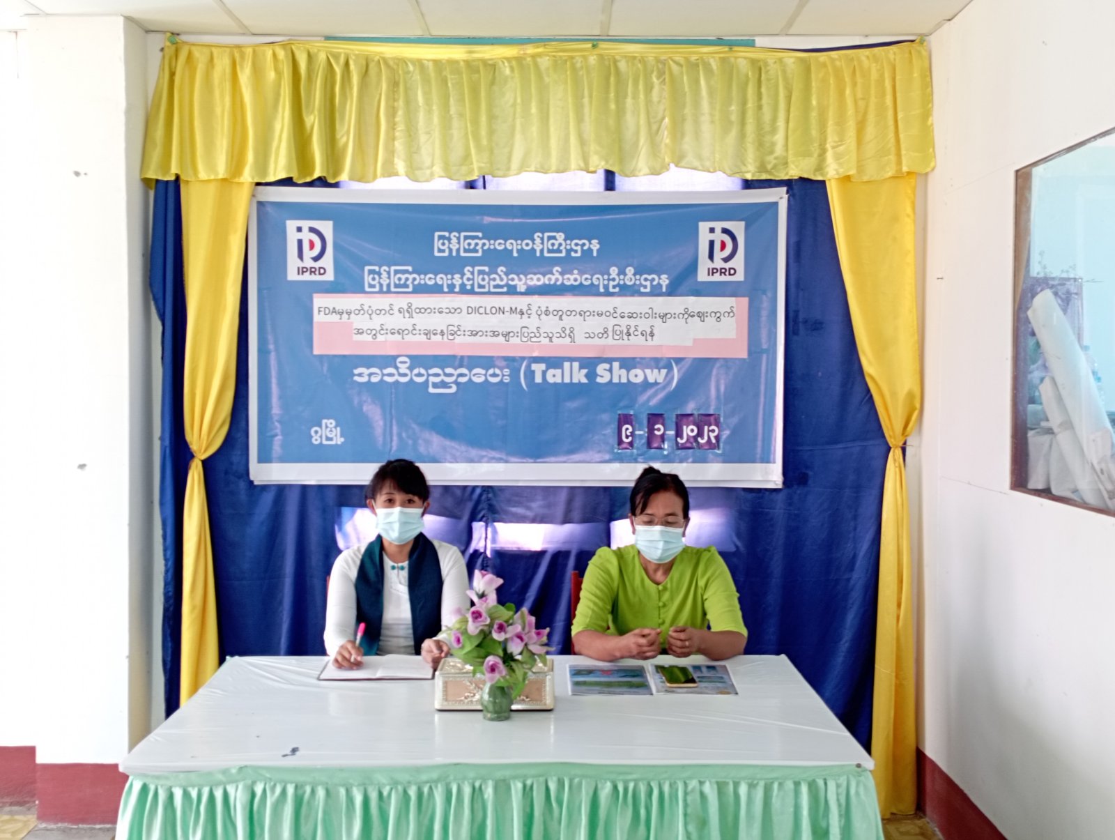 အသိပညာပေး (Talk Show)တွင် ပြန်ကြားရေးနှင့်ပြည်သူ့ဆက်ဆံရေးဦးစီးဌာနမှ ဦးစီးအရာရှိ ဒေါ်ရွှေရည်ဝင်းကျော်က တရားမဝင် ဆေးဝါးများအား ဈေးကွက်အတွင်း ရောင်းချနေခြင်းနှင့် ပတ်သက်၍ အသိပညာပေး (Talk Show)တွင် ဆွေးနွေးပေးစေလိုကြောင်း ပြောကြားခဲ့ရာ စားသုံးသူရေးရာဦးစီးဌာနမှ မြို့နယ်တာဝန်ခံ ဒေါ်မာမာလေးက ဆေးဆိုင်များတွင် DICLON-M Tablet(Diciofenac Sodium 50 mg, Paracetamol 500mg)သည် New Magnate Co-Ltd မှ ဆေးဝါးမှတ်ပုံ တင်၍ တင်သွင်းဖြန့်ဖြူးရောင်းချနေသော ဆေးဝါးဖြစ်ပြီး ဈေးကွက်အတွင်း ပုံစံတူဆေးဝါးများကို မှတ်ပုံတင်ထားခြင်းမရှိဘဲ တရားမဝင်တင်သွင်းရောင်းချနေကြသည့်အတွက် သုံးစွဲသူပြည်သူများဘေးအန္တရာယ်ကင်း ရှင်းစေရန်ရည်ရွယ်၍ မြို့နယ်ပူးပေါင်းအဖွဲ့ဖြင့် ဈေးကွက်အတွင်းရှိ အရောင်းဆိုင်များအားစစ်ဆေးခဲ့ကြောင်း၊ ပြည်သူများအနေဖြင့် မှတ်ပုံတင်မဲ့ဆေးဝါးများ၊ သက်ဆိုင်ရာဌာနများမှ တားမြစ်ထားသော ဆေးဝါးများ၊ သက်တမ်းလွန်ဆေးဝါးများ ဈေးကွက်အတွင်း ရောင်းချမှုရှိပါက သိရှိနိုင်စေရေးနှင့် မြန်မာနိုင်ငံစားသုံးသူကာကွယ်ရေး ကော်မရှင်၏ ၂./၂၀၁၉ ညွှန်ကြားချက်ပါ ဆေးဝါးနှင့်ဖြည့်စွက်စာများတွင် ဖော်ပြပါရှိရမည့် ကုန်အညွှန်းအမှတ်အသားဖော်ပြချက်နှင့် ကိုက်ညီမှုရှိသော ဆေးဝါးနှင့်ပစ္စည်းများကိုသာ ဝယ်ယူ သုံးစွဲသင့်ကြောင်း အကျယ်တဝင့်ဆွေးနွေး အသိပညာပေး ဆောင်ရွက်ခဲ့ကြောင်းသိရသည်။