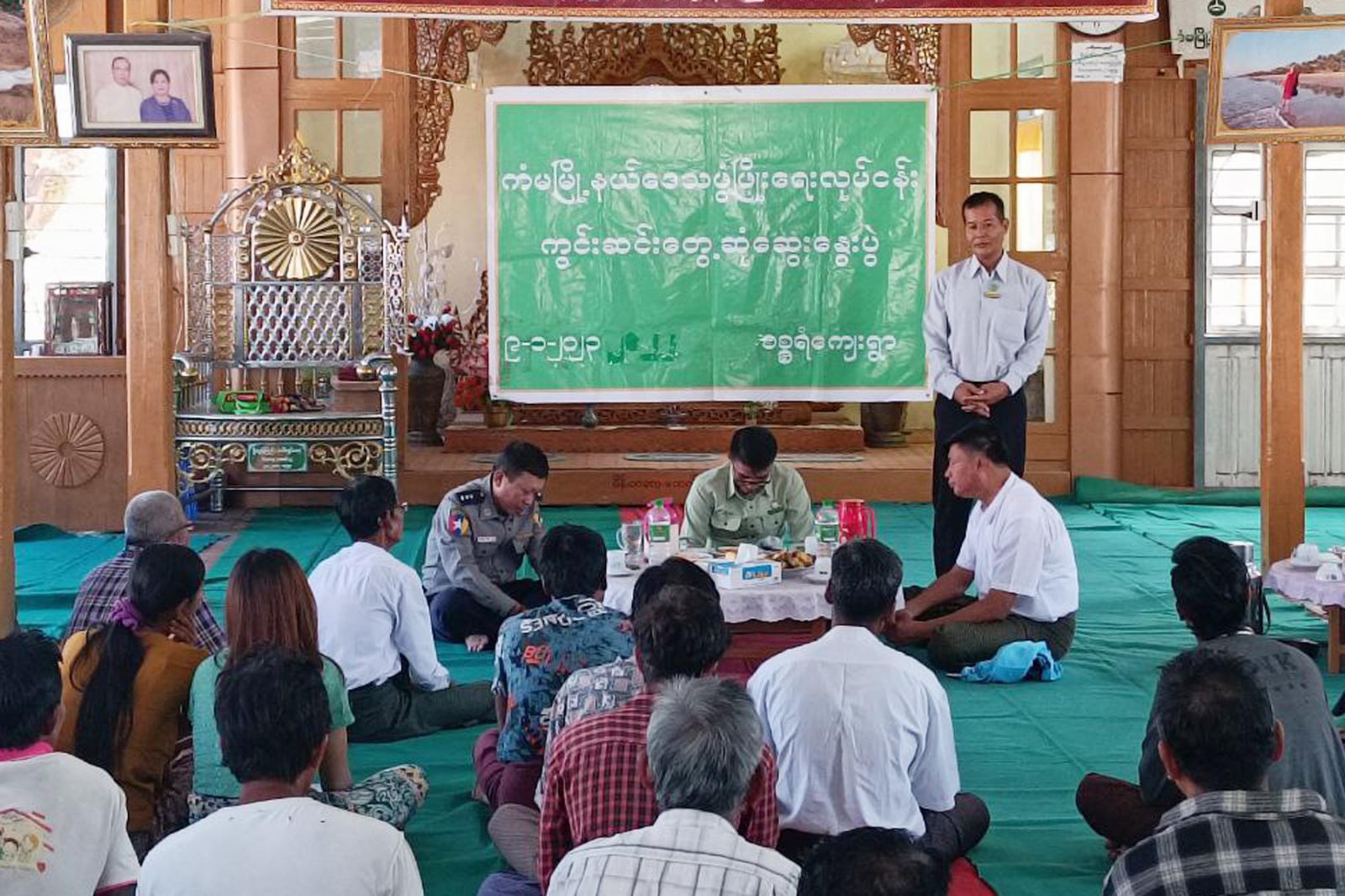 မကွေးတိုင်းဒေသကြီး၊ သရက်ခရိုင်၊ ကံမမြို့နယ် စီမံအုပ်ချုပ်ရေးအဖွဲ့၏ ဦးဆောင်မှုဖြင့် ဌာန ဆိုင်ရာများ ပူးပေါင်းအဖွဲ့က မြို့နယ်အတွင်း ကျေးလက်နေပြည်သူများ လူမှုစီးပွားဘဝ ဖွံ့ဖြိုးတိုးတက်စေရန်အတွက် ရပ်ရွာအေးချမ်းသာယာရေး၊ တရားဥပဒေစိုးမိုးရေးနှင့် ဒေသဖွံ့ဖြိုးရေးလုပ်ငန်းများ အကောင်အထည်ဖော်ဆောင်ရွက်နိုင်ရေး အရှိန်အဟုန်မပျက် ကွင်းဆင်းဆောင်ရွက်လျက်ရှိရာ ယမန်နေ့ နေ့လယ် ၁၂ နာရီက ကံမမြို့နယ် စစ္စရံကျေးရွာ ဘုန်းတော်ကြီးကျောင်း၌ ဒေသခံပြည်သူများနှင့်တွေ့ဆုံ၍ ဒေသဖွံ့ဖြိုးရေး ကိစ္စရပ်များအား တွေ့ဆုံဆွေးနွေးခဲ့ကြောင်း သိရသည်။