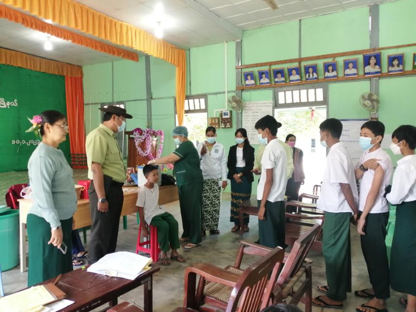 ကျန်းမာရေးဝန်ထမ်းများက ကိုဗစ်-၁၉ စည်းကမ်းသတ်မှတ်ချက်များနှင့်အညီ စနစ်တကျထိုးနှံပေးလျက်ရှိကြောင်း သိရသည်။ သက်ဆိုင်ရာကျောင်းများအလိုက် ထိုးနှံပေးသွားမည်ဖြစ်ကြောင်း မြို့နယ်ပြည်သူ့ကျန်းမာရေးဦးစီးဌာနက သိရသည်။