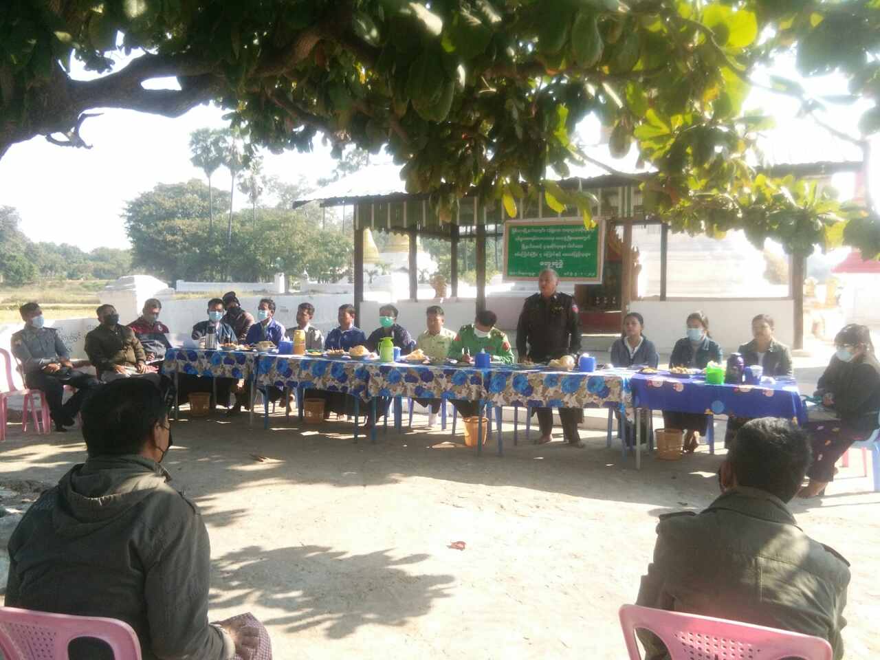 ရှေးဦးစွာ မြို့နယ်စီမံအုပ်ချုပ်ရေးအဖွဲ့ အဖွဲ့ဝင်(၁) ဗိုလ်မှူးဘိုဘိုအောင်က နိုင်ငံရေးအခြေအနေများ၊ နိုင်ငံတော်စီမံအုပ်ချုပ်ရေးကောင်စီ၏ ရှေးလုပ်ငန်းစဉ်(၅)ရပ်နှင့် ဦးတည်ချက် (၉ )ရပ်တို့ကို အကောင်ထည်ဖော်ဆောင်ရွက်နေမှုများ ရှင်းလင်းဆွေးနွေးသည်။ ဆက်လက်၍ မြို့နယ်စီမံအုပ်ချုပ်ရေးအဖွဲ့ဝင်များနှင့် ဌာနဆိုင်ရာများက မိမိဌာနအလိုက် ဆောင်ရွက်နေမှုများကို ရှင်းလင်းဆွေးနွေးပြီး ငါးဆူကျေးရွာဥက္ကဋ္ဌ ဦးမြတ်ကျော်ရွှေမှ ကျေးရွာအုပ်စုအတွင်းရှိ အိမ်ထောင်စု ဇယားများတွင် နာမည်လွဲ/နာမည်ထပ်များရှိနေပါသဖြင့် ပြန်လည်ပြင်ဆင်ဆောင်ရွက်ပေးစေလိုကြောင်း၊ ကျေးရွာကုန်ထုတ်လမ်းရရှိရေး ဆောင်ရွက်ပေးစေလိုကြောင်း၊ ကျွန်းဦးကျေးရွာနေ ပြည်သူတစ်ဦးမှ ကျေးရွာအဝင်လမ်းပေ ၈၀၀ခန့်မှာ မိုးရာသီတွင် သွားလာမှု မကောင်းပါသဖြင့် ပြန်လည်ပြုပြင်ပေးစေလိုကြောင်းနှင့် ကျေးရွာမီးရရှိရေး ဆောင်ရွက်ပေးစေလိုကြောင်း အသီးသီး ဆွေးနွေးတင်ပြရာ တက်ရောက်လာသည့် ဌာနဆိုင်ရာ တာဝန်ရှိသူများက ပြန်လည်ဆွေးနွေးခဲ့ကြသည်။ ထို့နောက် မြစ်သားမြို့ ရဲစခန်းမှ (ဒုရဲအုပ်)ဦးဟိန်းဇော်ထက်က တရားဥပဒေစိုးမိုးရေးနှင့် လူကုန်ကူးမှုမခံရစေရေးနှင့် သက်ငယ်မုဒိမ်းမှု မဖြစ်ပွားစေရေး အသိပညာပေး ပြောကြားခဲ့ပြီး မြို့နယ်ရွေးကောက်ပွဲ ကော်မရှင်အဖွဲ့ခွဲရုံး ဒုတိယဦးစီးမှူး ဒေါ်ခင်မိုးမိုးမ လာမည့် ၂၀၂၃ခုနှစ်၌ ရွေးကောက်ပွဲ ကျင်းပပြုလုပ်ရာတွင် PRစနစ်ကျင့်သုံးမည့် အခြေအနေများ ရှင်းလင်းပြောကြားခဲ့သည်။ မြို့နယ် လဝကဦးစီးမှူး ဦးအောင်ကျော်မိုးမှ မှတ်ပုံတင်နှင့် အိမ်ထောင်စုဇယားများ ပြုလုပ်ရာတွင် အခက်အခဲရှိပါက ယခုလိုတွေ့ဆုံပွဲများ၌ ဒေသခံပြည်သူများအနေဖြင့် ကိုယ်တိုင်လာရောက် တွေ့ဆုံကာ ဆွေးနွေးနိုင်ကြောင်း ရှင်းလင်းပြောကြားခဲ့သည်။