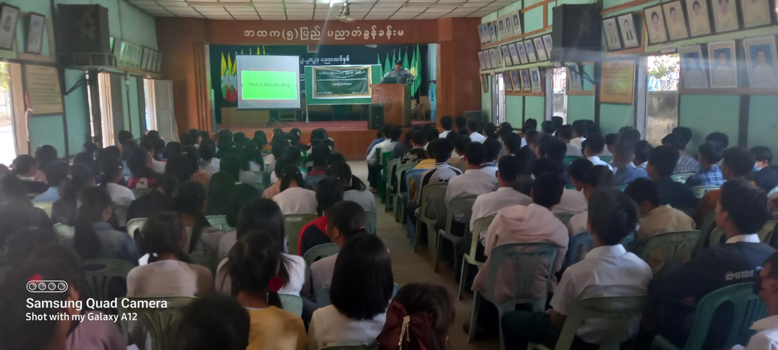 ရှေးဦးစွာ ဟောပြောပွဲတွင် မူးယစ်ဆေးဝါးတားဆီးနှိမ်နှင်းရေး ရဲတပ်ဖွဲ့ အမှတ်(၃၁)၊ မူးယစ်တပ်ဖွဲ့စုမှ ရဲမှူးမျိုးမင်းက မူးယစ်ဆေးနှင့် ပတ်သက်သည့် အကြောင်းအရာများ၊ မူးယစ်ဆေးဝါးအန္တရာယ်၊ ဆေးလိပ်နှင့် ဆေးရွက်ကြီးအန္တရာယ်၊ ဆေးခြောက်အန္တရာယ်၊ စိတ်ကြွရူးသွပ် ဆေးပြားအန္တရာယ်၊ အရက်အန္တရာယ်၊ ကော်ရှုခြင်းအန္တရာယ်၊ ကွမ်းစားခြင်း အန္တရာယ်နှင့်ကျန်းမာရေးဆိုင်ရာ၊ ဥပဒေဆိုင်ရာအသိပညာပေး အကြောင်းအရာများ၊ လူငယ်များမူးယစ်ဆေးဝါးနှင့်ပတ်သက်ပြီး ရှောင်ရှားနိုင်ရန်နှင့် လူငယ်များအား မူးယစ်ဆေးဝါးအန္တရာယ် မကျရောက်ရန် အတွက် အသိပညာဗဟုသုတများ ရရှိစေရန် ဟောပြောခဲ့ကြောင်း သိရသည်။