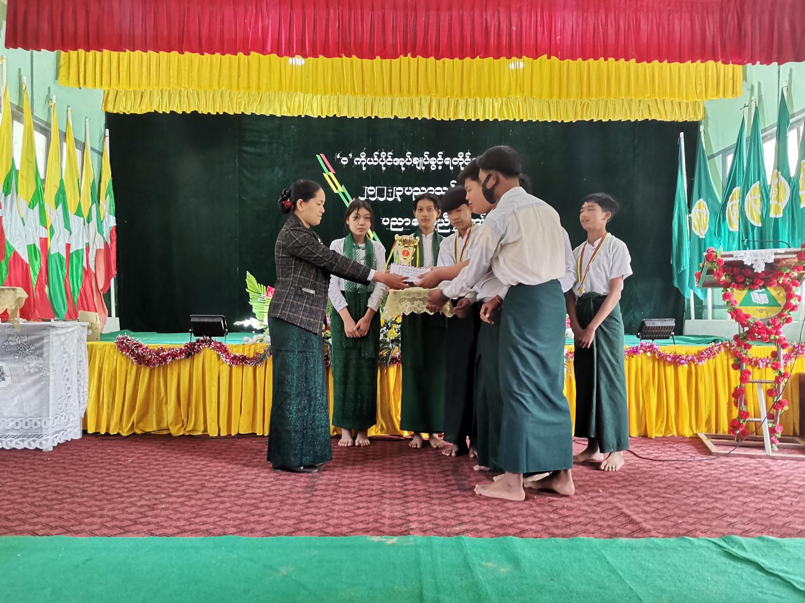ဆက်လက်၍ ၂၀၂၂-၂၀၂၃ ပညာသင်နှစ်၊ အထက(ဟိုပန်)ကျောင်းမှ မြို့နယ်အဆင့် လူရည်ချွန်ဆုရရှိသည့် အခြေခံပညာအထက်တန်းအဆင့် ကျောင်းသား/သူ (၅)ဦး၊ Grade-5 မှ Grade-9 အထိ အတန်းလိုက် အခြေခံပညာ အင်္ဂလိပ်စာစွမ်းရည်ဆု၊ သင်္ချာစွမ်းရည်ဆုရရှိကြသည့် ကျောင်းသား/သူ(၁၅)ဦး၊ မူလတန်းအောက်ဆင့် KG မုန့်စားပြိုင်ပွဲ၊ မီတာ(၅၀) အပြေးပြိုင်ပွဲ၊ မူလတန်းထက်ဆင့် မီတာ(၁၀၀)အပြေးပြိုင်ပွဲ၊ အိတ်စွပ်ပြေးပြိုင်ပွဲများတွင် ဆုရရှိသည့် ကျောင်းသား/သူ(၁၂)ဦး၊ ကျောင်းတွင်း ပိုက်ကျော်ခြင်း (ထက်ဆင့်)ပြိုင်ပွဲတွင် ပထမဆု၊ ဒုတိယဆု ရရှိကြသည့် အသင်းနှစ်သင်းနှင့် အကောင်းဆုံးကစားသမားဆုများ စသည့် ကာယ၊ ဉာဏစွမ်းရည် ထူးချွန်ဆုများအား တာဝန်ရှိသူများက အသီးသီး ချီးမြှင့်ပေးအပ်ခဲ့သည်။ ၎င်းနောက် အထက(ဟိုပန်)ကျောင်းမှ ကျောင်းသား/သူ များက တိုင်းရင်းသားရိုးရာ၊ အက အလှများဖြင့် ကပြဖျော်ဖြေ တင်ဆက်ခဲ့ကြသည်။