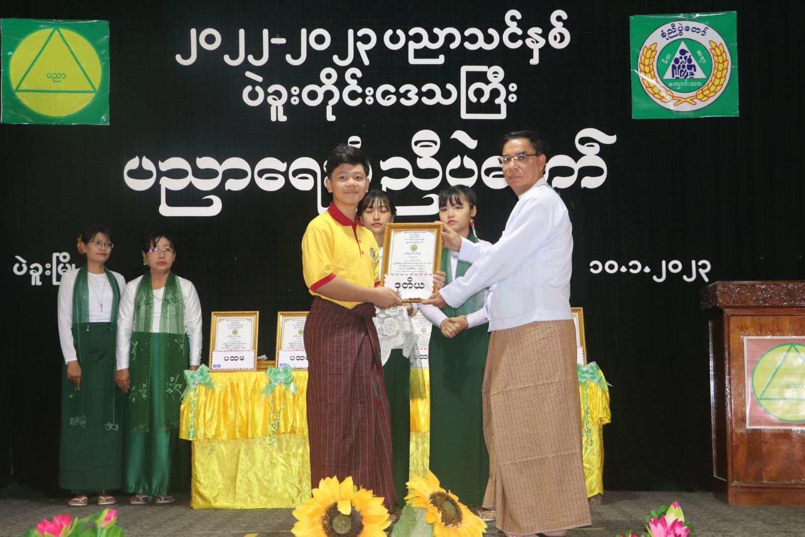 ထို့နောက် ဗဟိုအဆင့် စာပေ၊ ဂီတ၊ အနုပညာပြိုင်ပွဲများတွင် ဆုရရှိခဲ့ကြသူများအား တိုင်းဒေသကြီး ဝန်ကြီးချုပ် ဦးမျိုးဆွေဝင်းက လည်းကောင်း၊ တိုင်းဒေသကြီးအဆင့် စာပေ၊ ဂီတ၊ အနုပညာပြိုင်ပွဲများ ဆုရရှိကြသူများအား အစိုးရအဖွဲ့ တာဝန်ရှိသူများက ဆုများအသီးသီး ပေးအပ်ချီးမြှင့်ခဲ့ကြပြီး အမှတ်(၁) အခြေခံပညာကျောင်း ကျောင်းသား/ကျောင်းသူလေးများက မင်္ဂလာပါ သီးချင်းဖြင့်လည်းကောင်း အခြေခံပညာအထက်တန်းကျောင်းခွဲ(ကတွင်းခြံ)မှ ကျောင်းသား/ကျောင်းသူလေးများက ဦးရွှေရိုးနှင့် ဒေါ်မိုးအကဖြင့်လည်းကောင်း အသီးသီးကပြ ဖျော်ဖြေတင်ဆက်ခဲ့ကြရာ တိုင်းဒေသကြီး ဝန်ကြီးချုပ်က ကပြဖျော်ဖြေတင်ဆက်ခဲ့ကြသည့် အကအဖွဲ့များအား ဂုဏ်ပြုငွေများ ထောက်ပံ့ပေးအပ်ခဲ့သည်။