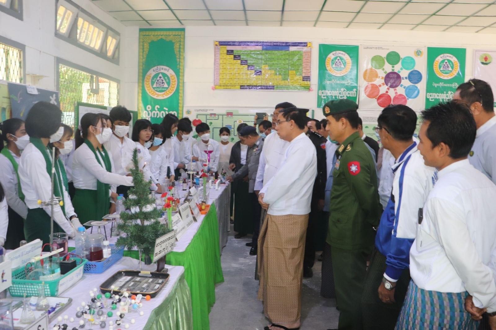 ယင်းနောက် တိုင်းဒေသကြီး ဝန်ကြီးချုပ်၊ အစိုးရအဖွဲ့ တာဝန်ရှိသူများနှင့်ဆုရ ကျောင်းသား/ကျောင်းသူလေးများနှင့် အမှတ်တရ စုပေါင်းမှတ်တမ်းတင်ဓါတ်ပုံ ရိုက်ကူးခဲ့ကြပြီး ဝန်ကြီးချုပ်နှင့်အဖွဲ့သည် ရာပြည့်ခန်းမ၌ ကျောင်းသား/ကျောင်းသူလေးများ၏ ဘာသာရပ်အလိုက် လက်တွေ့သရုပ်ပြသနေမှု ပြခန်းများအား လှည့်လည်ကြည့်ရှု အားပေးခဲ့ကြောင်း သိရသည်။