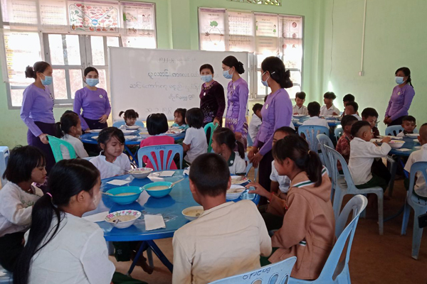 ထို့နောက် ခရိုင်/မြို့နယ် မိခင်နှင့်ကလေးစောင့်ရှောက်ရေးအသင်းမှ ကျောင်းသား၊ ကျောင်းသူများအား စာရေးကိရိယာပစ္စည်းများ ထောက်ပံ့ပေးအပ်ခဲ့ပြီး အာဟာရဖြည့် နို့ဆန်ပြုတ်တိုက်ကျွေးခဲ့ကြောင်း သိရသည်။