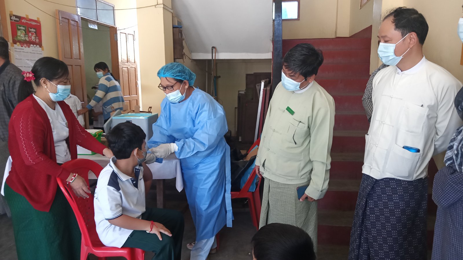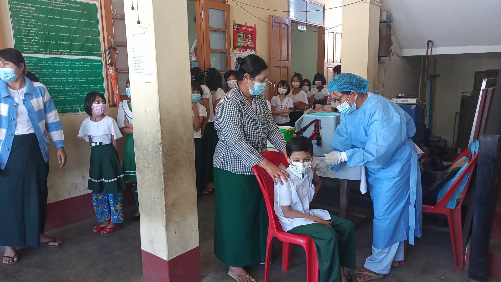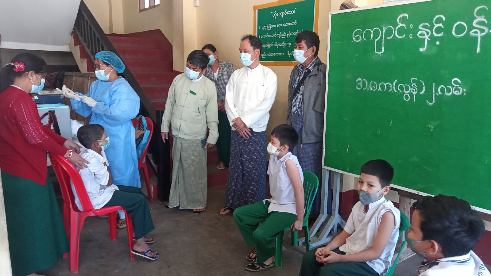 ကိုဗစ်-၁၉ရောဂါ ကာကွယ်ထိန်းချုပ်ရေးနှင့်အရေးပေါ်တုံ့ပြန်ရေးကော်မတီ၏ကြီးကြပ်မှုဖြင့် ကာကွယ်ထိန်းချုပ်ရေးလုပ်ငန်းများအား အရှိန်အဟုန်မြှင့် ဆောင်ရွက်ပေးလျက်ရှိရာ ပဲခူးတိုင်းဒေသကြီး၊ သာယာဝတီခရိုင်၊ လက်ပံတန်းမြို့နယ်တွင် အသက်(၅ နှစ်မှ ၁၂နှစ်အထိ) ကျောင်းသား/ သူများအား ကိုဗစ်-၁၉ရောဂါ ကာကွယ်ဆေး ထပ်ဆောင်းထိုးနှံပေးခြင်းကို ဇန်နဝါရီလ ၁၀ ရက်နေ့က မူလွန်(၂)လမ်းကျောင်း၌ ဆောင်ရွက်ခဲ့သည်။