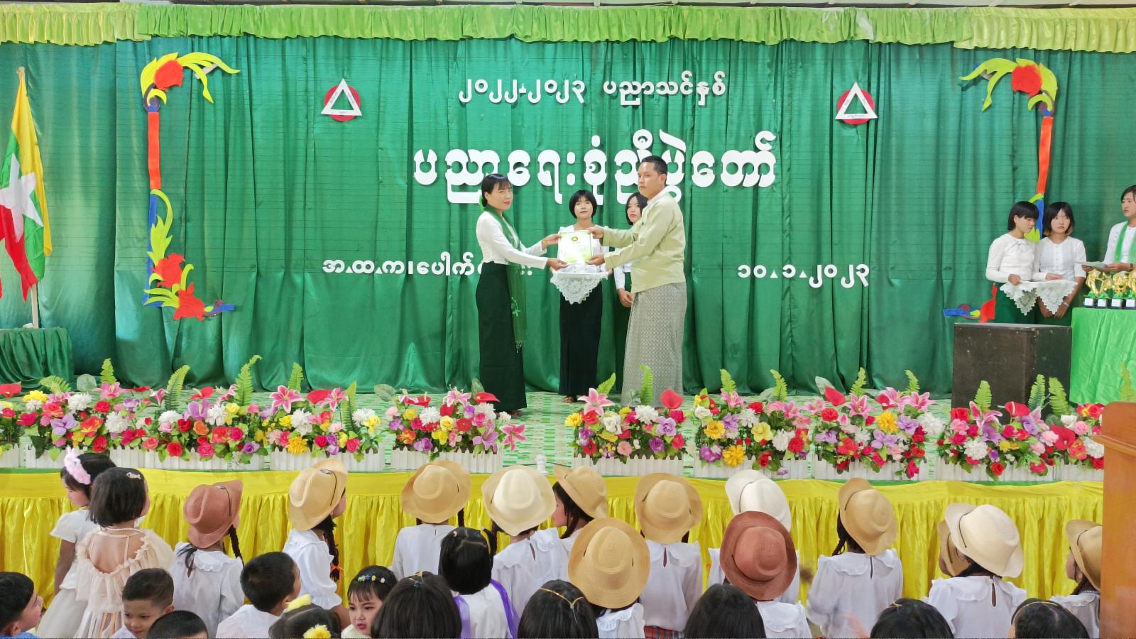 ဆက်လက်၍ ဒုတိယမြို့နယ်အုပ်ချုပ်ရေးမှူး ဦးဇော်ဇော်ဦးနှင့်ကျောင်းအုပ်ဆရာကြီး ဦးညွှန့်ဝင်းတို့က အမှာစကားများပြောကြားသည်။ ယင်းနောက် ၂၀၂၂-၂၀၂၃ ပညာသင်နှစ်တွင် စာပေပြိုင်ပွဲ၊ ကာယ၊ ဉာဏ ပြိုင်ပွဲများတွင် ထူးချွန်ဆုရရှိကြသူများ၊ ပညာရေးဘက်စုံထူးချွန်ဆုများ၊ အားကစားဘက်စုံထူးချွန်ဆု၊ ကျောင်းတတ်ရက်မှန်ဆုရ ဆရာ၊ ဆရာမများ၊ တက္ကသိုလ်ဝင်စာမေးပွဲတွင် ဂုဏ်ထူးရရှိသူများကို တာဝန်ရှိသူများက ဆုများအသီးသီးပေးအပ်ချီးမြှင့်ခဲ့ကြပြီး ကျောင်းသား၊ ကျောင်းသူလေးများက အကအဖွဲ့များ၊ အကအလှယိမ်းပဒေသာများဖြင့် ဧည့်ခံသီဆိုဖျော်ဖြေခဲ့ကြကြောင်း သိရသည်။