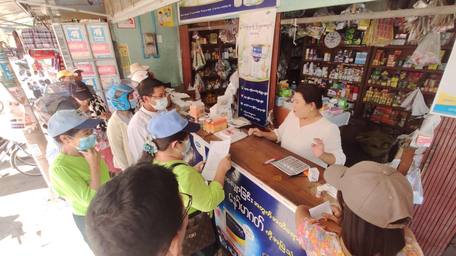 မြို့နယ်ကျန်းမာရေးဦးစီးဌာန မြို့နယ်သူနာပြုအဆင့်(၁)ဦးအေးနိုင်နှင့် ဝန်ထမ်းများ စားသုံးသူရေးရာဦးစီးဌာန မြို့နယ်တာဝန်ခံ ဒေါ်ရီရီရှိန်နှင့် မြို့မစည်ပင်သာယာဈေး တာဝန်ခံတို့က ပူးပေါင်း၍ ဆေးဝါးရောင်းချသောဆိုင်များတွင် တရားမဝင် အိမ်သုံးဆေးဝါး Paracetamol 500g သောက်ဆေးထိုးဆေးတို့ ရောင်းချခြင်း ရှိ၊မရှိနှင့် စားသောက်ကုန်ရောင်းချသော ဆိုင်များတွင် Very good အမှတ်တံဆိပ် ကော်ဖီမစ်ရောင်းချခြင်း ရှိ၊မရှိတို့ကို စစ်ဆေး၍ရောင်းချသော ဆိုင်ပိုင်ရှင်များအား တရားမဝင်ကုန်စည်များ ရောင်းချခြင်းမပြုရန်နှင့် ကုန်အမှတ်တံဆိပ် အတုအစစ် ခွဲခြားခြင်းတို့ကို လက်တွေ့သရုပ်ပြ အသိပညာပေးဆောင်ရွက်ခဲ့ကြကြောင်း သိရသည်။