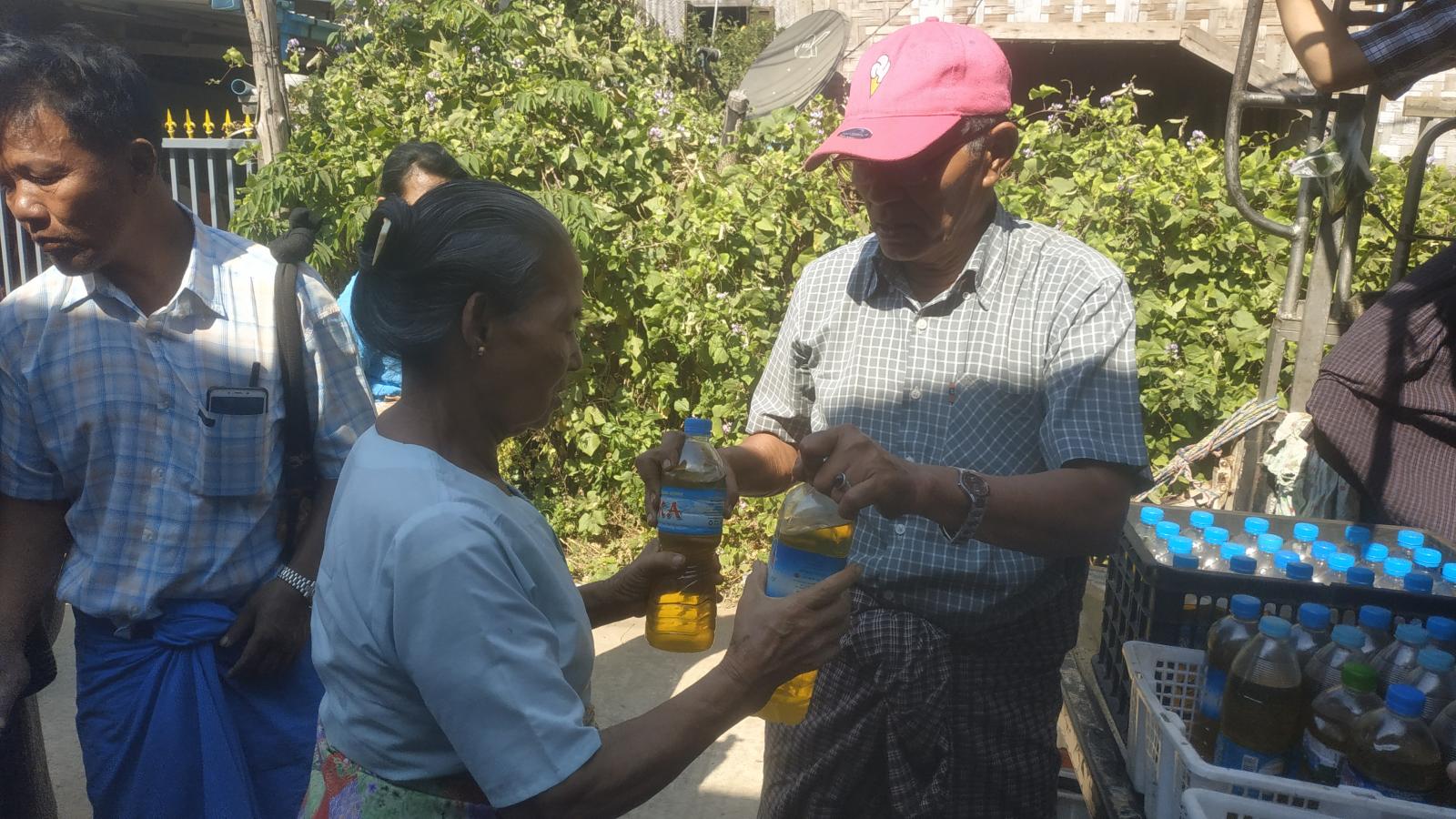 မြန်မာနိုင်ငံဆီကုန်သည်နှင့် ဆီလုပ်ငန်းရှင်များအသင်းမှ ပျဉ်းမနားမြို့နယ်အတွင်းရှိ ရပ်ကွက်/ ကျေးရွာများအတွင်းရှိ ပြည်သူများအား ဆီတစ်ပိသာလျှင် ငွေ(၅၀၀၀)ကျပ်နှုန်းဖြင့် ရောင်းချပေးနေလျက်ရှိရာ ယနေ့နံနက်ပိုင်းတွင် ကင်ပွန်းတန်းအုပ်စု၊ တပ်ပိုးကျေးရွာတွင် ဆီများ စျေးနှုန်းသက်သာစွာဖြင့် ရောင်းချပေးခဲ့သည်။