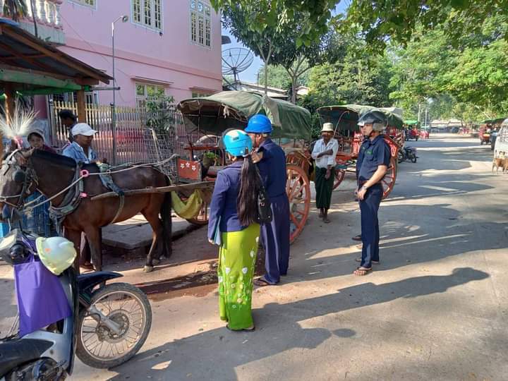 ထိုသို့ ကွင်းဆင်းဆောင်ရွက်ရာတွင် မြို့နယ်စည်ပင် သာယာရေးအဖွဲ့ အမှုဆောင်အရာရှိ၏ အနီးကပ်ကြီးကြပ်မှုဖြင့် အခွန်ဌာနစိတ်နှင့် စည်းကမ်းထိန်းဌာနစိတ်တို့မှ ဝန်ထမ်းများက လိုင်စင်သက်တမ်း တိုးဆောင်ရွက်နိုင်ခြင်းမရှိသေးသည့် (ဆိုက်ကား၊မြင်းလှည်း) အနှေးယာဉ်ပိုင်ရှင်များအား တွေ့ဆုံကာ မြို့နယ်စည်ပင်သာယာရေးအဖွဲ့ရုံး အခွန်ဌာနစိတ်သို့သွားရောက်ပြီး လိုင်စင်သက်တမ်းတိုး အမြန်ပြုလုပ်ဆောင်ရွက်နိုင်ရေး အသိပညာပေးဆွေးနွေးခြင်းများ ကွင်းဆင်းဆောင်ရွက်ပေးခဲ့ကြောင်း သိရသည်။