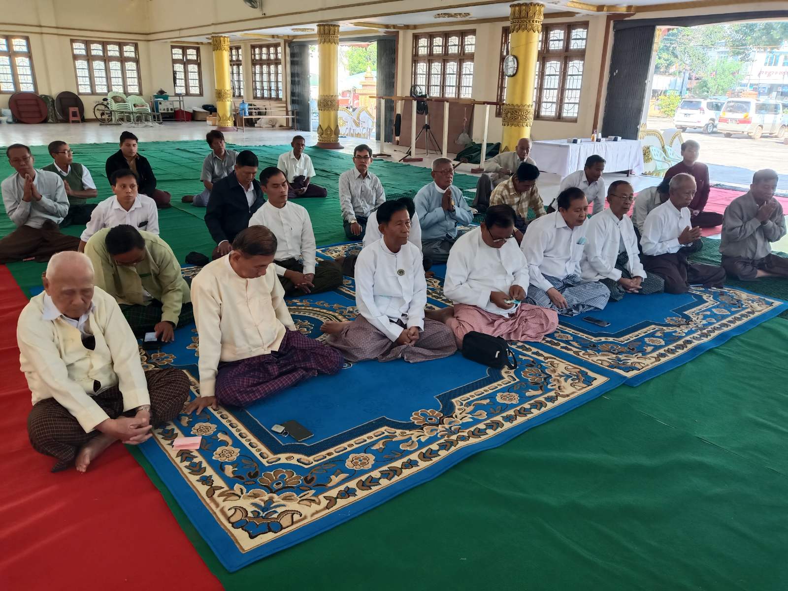 ရှေးဦးစွာ အခမ်းအနားအား နမောတဿ (သုံးကြိမ်) ရွတ်ဆိုဖွင့်လှစ်၍ ကျိုက်ထိုမြို့ ဂူကျောင်း ဆရာတော်ဘဒ္ဒန္တမဏ္ဍလမှမြတ်စွာ ဘုရားအားပင့်ဖိတ်လျှောက်ထားပြီးဝါးကျောင်း ဆရာတော် ဘဒ္ဒန္တသုမနသီရိမှငါးပါးသီလ ချီးမြှင့်ခဲ့သည်။