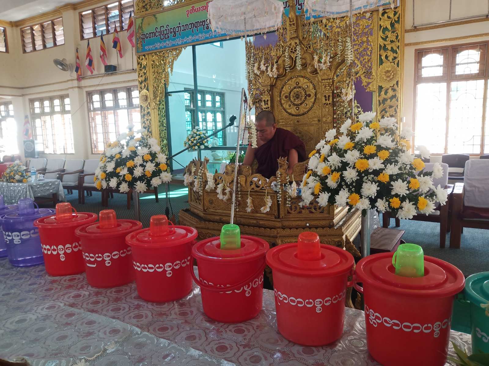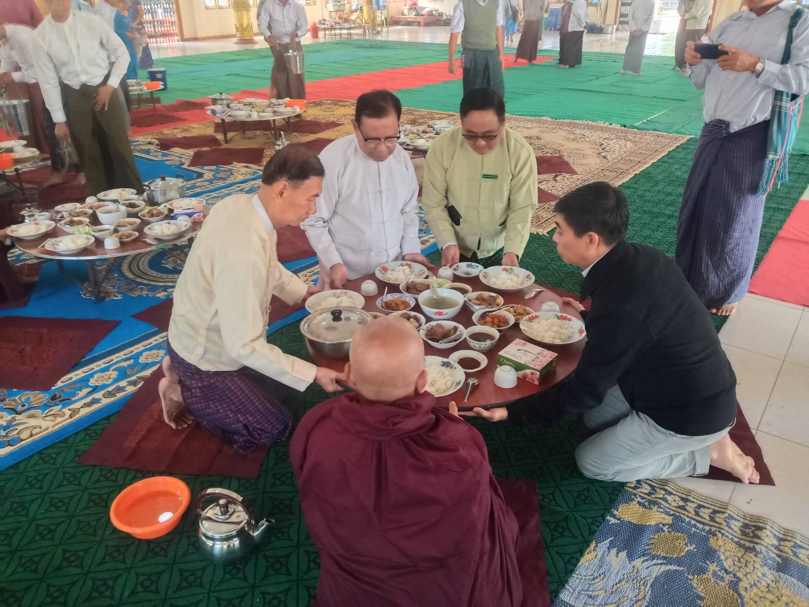 ဆက်လက်၍ ဆရာတော်အရှင်သူမြတ်များအား မြို့နယ်စီမံအုပ်ချုပ်ရေးအဖွဲ့ဥက္ကဋ္ဌ ဦးမျိုးမင်းစိုး၊ အဖွဲ့ဝင် ဗိုလ်မှူးပြည်ထွန်း၊ မြို့နယ်ရဲတပ်ဖွဲ့မှူးရဲမှူး ဇော်ဇော်နှင့်အဖွဲ့ဝင်များက အလှူရှင်များနှင့်အတူ နေ့ဆွမ်းဆက်ကပ်လှူဒါန်းပြီး လှူဖွယ်ဝတ္ထုပစ္စည်းများကို ဆက်ကပ်လှူဒါန်းခဲ့ကြသည်။