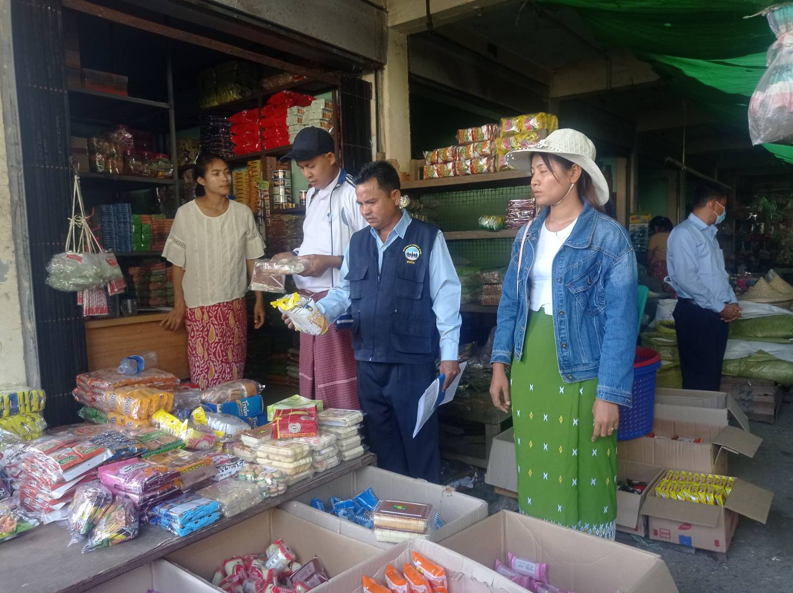 ထိုသို့ ကွင်းဆင်းစစ်ဆေးရာတွင် စားသုံးသူရေးရာဦးစီးဌာနမှ မြို့နယ်တာဝန်ခံ ဦးလှမောင်အေးနှင့် စည်ပင်သာယာအဖွဲ့မှ တာဝန်ရှိသူတို့ ပူးပေါင်း၍ မြို့မဈေးကြီးအတွင်း ဆေးဝါးပစ္စည်းအရောင်းဆိုင်များနှင့် စားသောက်ကုန် ပစ္စည်းအရောင်းဆိုင်တို့တွင် အန္တရာယ်ဖြစ်စေတတ်သည့် တရားမဝင် အိမ်သုံးဆေးဝါးအတု Paracetamol 500g သောက်ဆေး၊ ထိုးဆေးများနှင့် Coffee Shop (Very Good) အမှတ်တံဆိပ်ပါ ကော်ဖီမစ်များ ရောင်းချခြင်း ရှိ/မရှိတို့ကို ကွင်းဆင်းစစ်ဆေးခဲ့ကြပြီး၊ ဆိုင်ပိုင်ရှင်တို့အနေဖြင့် အန္တရာယ်ဖြစ်စေတတ်သည့် တရားမဝင်စားသောက်ကုန်များ ရောင်းချခြင်း မပြုကြရန်နှင့် ကုန်အမှတ်တံဆိပ် အတုအစစ် ခွဲခြားစမ်းသပ်နည်းတို့ကို လက်တွေ့သရုပ်ပြ ဆောင်ရွက်ပေးခဲ့ကြောင်း သိရသည်။