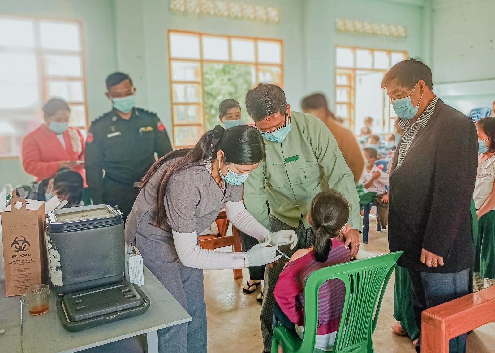 အဆိုပါ ထပ်ဆောင်းကာကွယ်ဆေးထိုးနှံနေမှုကို မြို့နယ်စီမံအုပ်ချုပ်ရေးအဖွဲ့ဥက္ကဋ္ဌ ဦးစိုးမင်းအောင်နှင့် အဖွဲ့ဝင်များက အားပေးကြည့်ရှုခဲ့ပြီး ကျန်းမာရေးဝန်ထမ်းများနှင့် ဆရာ/မများက ပေါင်းစပ်ဆောင်ရွက်ခဲ့ကြောင်း သိရသည်။