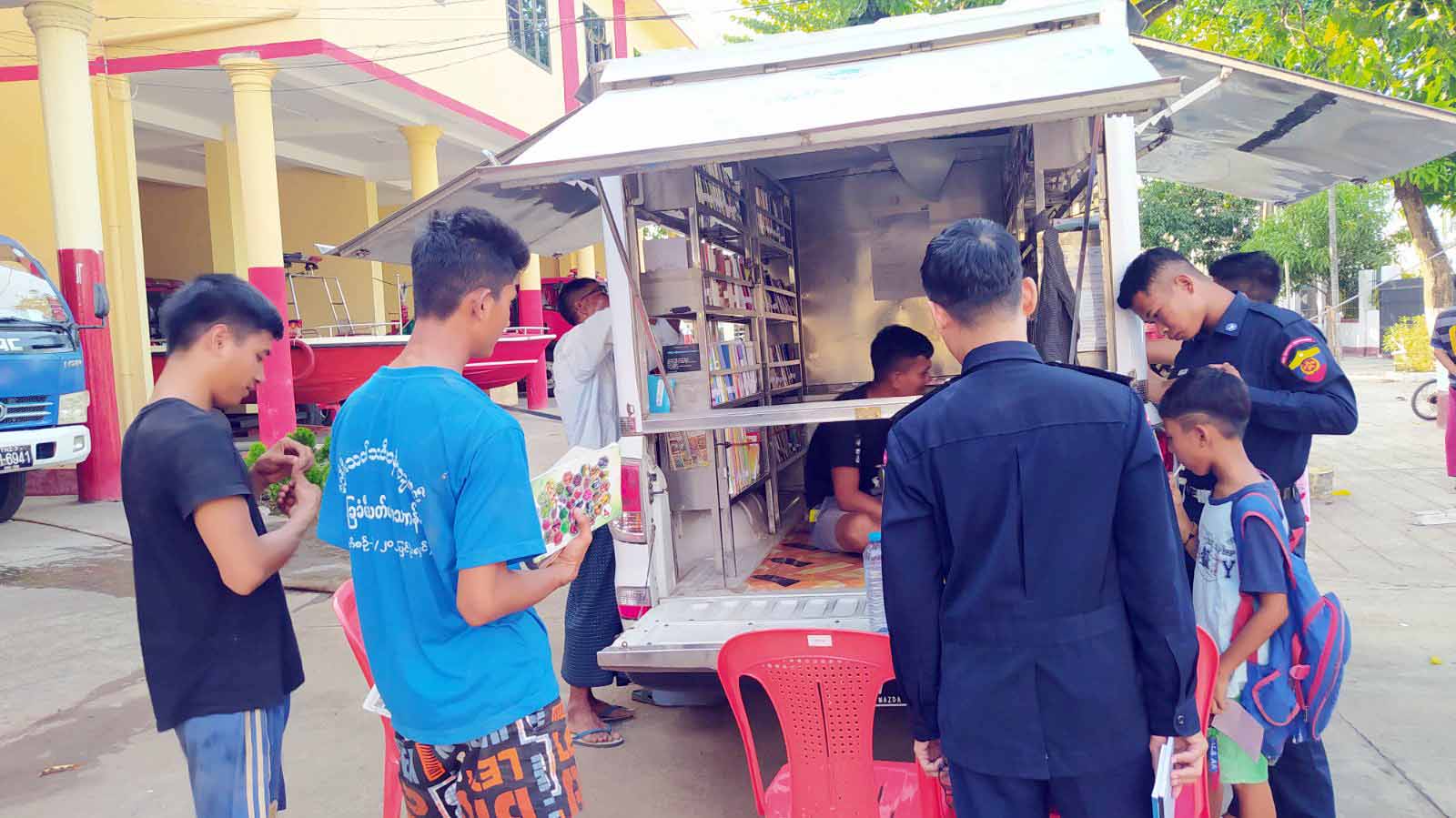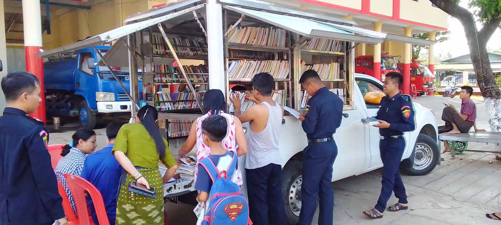 တနင်္သာရီတိုင်းဒေသကြီး၊ ထားဝယ်ခရိုင် ပြန်ကြားရေးနှင့်ပြည်သူ့ဆက်ဆံရေးဦးစီးဌာနမှ ဝန်ထမ်းများက ဒေသခံပြည်သူများအား စာပေဖတ်ရှုသည့် အလေ့အကျင့်ကောင်းများ ဖြစ်ပေါ်လာစေရန်၊ ကျောင်းသား/သူများ ကျောင်းစာအပြင် ပြင်ပစာပေဗဟုသုတ ရရှိစေရန်နှင့် ခရိုင်ပြည်သူ့စာကြည့်တိုက်သို့ လာရောက်မငှားရမ်းနိုင်သည့် ရပ်ကွက်များသို့ ရွေ့လျားစာကြည့်တိုက် Mobile Library Bus ဖြင့် သုတ/ရသစာအုပ်စာစောင်များ တင်ဆောင်၍ လှည့်လည် ငှားရမ်းပေးလျက်ရှိရာ ယနေ့နံနက်ပိုင်းတွင် မီးသတ်ဦးစီးဌာနရုံးမှ ဝန်ထမ်းများအား သုတ/ရသ စာအုပ်စာစောင်များ ငှားရမ်းပေးခဲ့ကြောင်း သိရသည်။