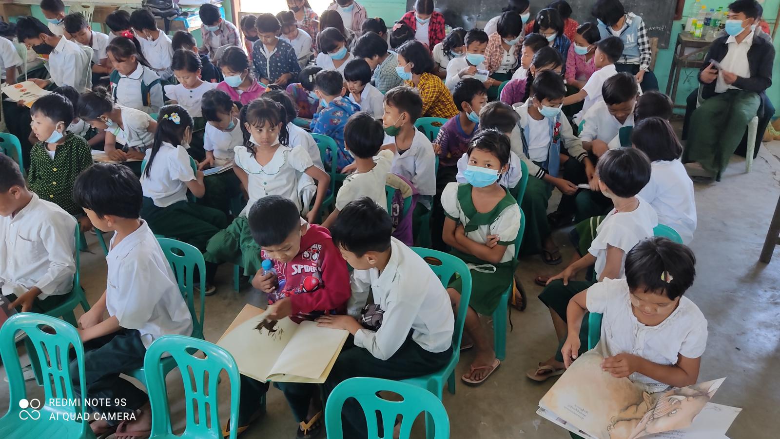 ထို့နောက် ကျောင်းသား ကျောင်းသူများအား ရုပ်ပုံပါစာအုပ်များကိုဖတ်ရှုစေခြင်း၊ ပုံပြင်ပြောခြင်း၊ နံရံကပ်စာစောင်များကို ကျောင်းသား ကျောင်းသူများက စိတ်ပါဝင်စားစွာကြည့်ရှုခဲ့ကြောင်း သိရသည်။