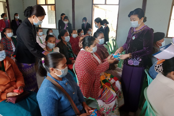 ထို့နောက် ခရိုင်အမျိုးသမီးရေးရာအဖွဲ့နှင့် မိခင်နှင့်ကလေးစောင့်ရှောက်မှုကြီးကြပ်ရေးအဖွဲ့ဉက္ကဋ္ဌ ဒေါ်ဇင်ဇင်သော်နှင့် မြို့နယ်အမျိုးသမီးရေးရာအဖွဲ့နှင့် မိခင်နှင့်ကလေးစောင့်ရှောက်ရေးအသင်းဉက္ကဋ္ဌ ဒေါ်မိမိခိုင်တို့က အသိပညာပေးဟောပြောပွဲသို့ တက်ရောက်လာသူများအား ကိုယ်တိုက် ဆပ်ပြာခဲများ ထောက်ပံ့ပေးအပ်ခဲ့ကြောင်း သိရသည်။