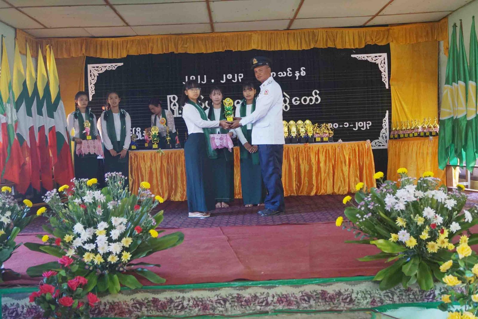 ဆက်လက်၍ ထူးချွန်ဆုရရှိသော ကျောင်းသား/ကျောင်းသူများအား မြို့နယ်စီမံအုပ်ချုပ်ရေး အဖွဲ့ဥက္ကဋ္ဌ ဦးအောင်ဆန်းဦးနှင့် တာဝန်ရှိသူများက ဆုများအသီးသီး ပေးအပ်ချီးမြှင့်ကြပြီး ကျောင်းသား/ကျောင်းသူများက အကပဒေသာဖြင့်ဖျော်ဖြေတင်ဆက်ခဲ့ကြောင်း သိရသည်။