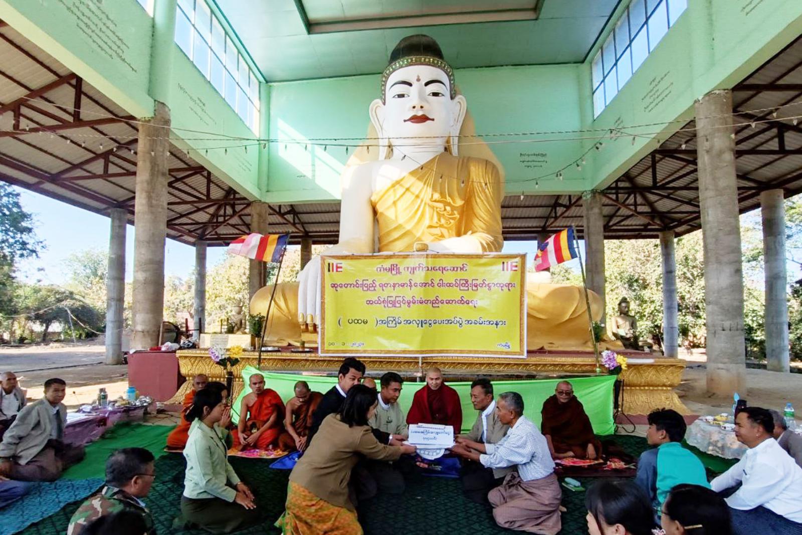 ထို့နောက် မြို့နယ်စီမံအုပ်ချုပ်ရေးအဖွဲ့ ဥက္ကဋ္ဌနှင့်အဖွဲ့ဝင်များ၊ ဌာနဆိုင်ရာများက စုပေါင်း အလှူငွေပေးအပ်ရာ ဂေါပကအဖွဲ့မှ လက်ခံရယူခဲ့ပြီး မြို့နယ် သံဃနာယကအဖွဲ့ဥက္ကဋ္ဌ ယွန်းကျောင်း ပရိယတ္တိစာသင်တိုက် ပဓါနနာယက ဆရာတော် ဂန္တဝါစကပဏ္ဍိတဘဒ္ဒန္တကောဝိဒထံမှ လှူဒါန်းမှုအစုစုအတွက် ရေစက် သွန်းချ တရားနာယူခဲ့ကြပြီး ဗုဒ္ဓသာသနံ စိရံတိဌတု(၃)ကြိမ် ရွတ်ဆိဆုတောင်း၍ အခမ်းအနား ရုပ်သိမ်းခဲ့ကြောင်း သိရသည်။