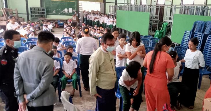 ထိုသို့ ထပ်ဆောင်းကာကွယ်ဆေးထိုးနှံပေးရာတွင် ကျန်းမာရေးဝန်ထမ်းများ၊ ကျောင်းဆရာ၊ ဆရာမများ၊ စေတနာ့ဝန်ထမ်းများ ပူးပေါင်း၍ ကျန်းမာရေးဝန်ကြီးဌာနမှ ချမှတ်ထားသည့် စည်းကမ်းချက်များနှင့်အညီ ကာကွယ်ဆေးထိုးနှံပေးလျက်ရှိရာ မြို့နယ်စီမံအုပ်ချုပ်ရေးအဖွဲ့ ဥက္ကဋ္ဌ ဦးကျော်စိုးနှင့် အဖွဲ့ဝင်များ၊ ဌာနဆိုင်ရာအကြီးအကဲများက ကာကွယ်ဆေးထိုးနှံမည့် ကျောင်းသား၊ ကျောင်းသူလေးများကို အားပေးကြည့်ရှု၍ လိုအပ်သည့် ကျန်းမာရေး အခြေအနေစောင့်ကြည့်မှုများ ပူးပေါင်းဆောင်ရွက်ပေးခဲ့ကြောင်း သိရသည်။