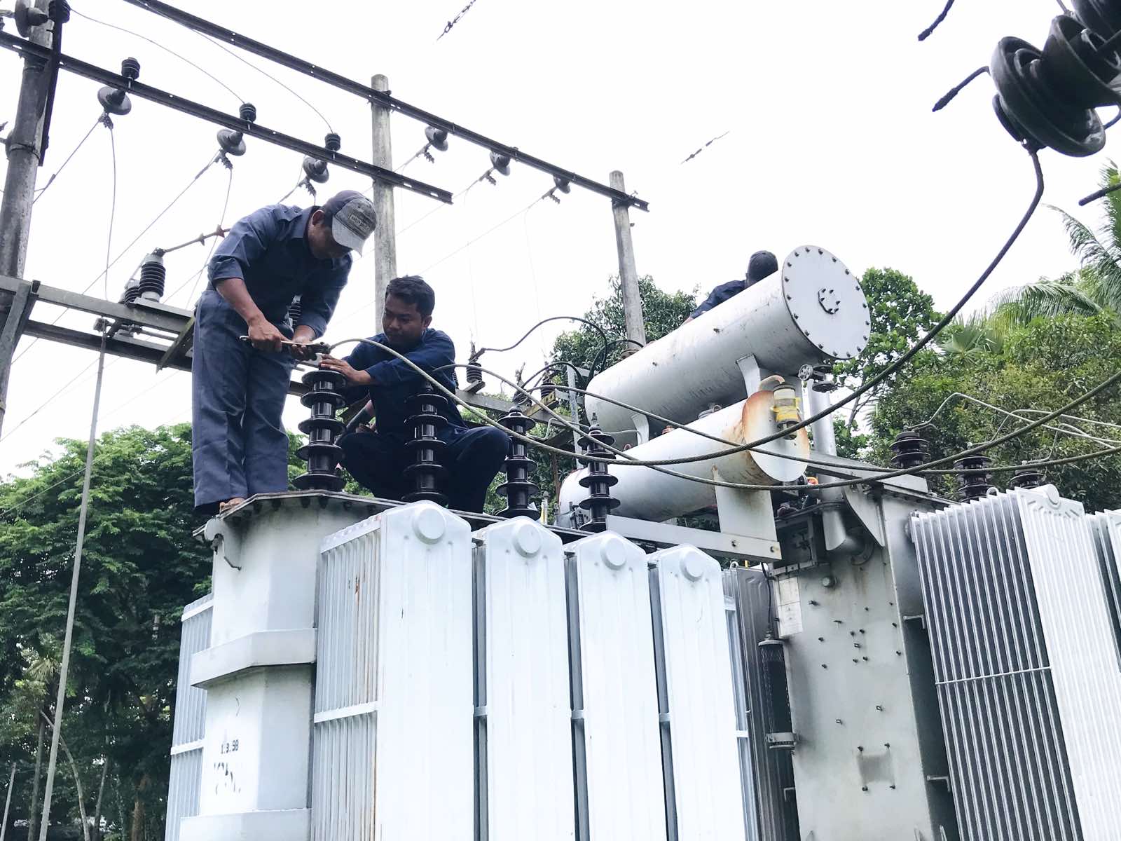 ဧရာဝတီတိုင်းဒေသကြီး၊ ကျုံပျော်ခရိုင်၊ ကျောင်းကုန်းမြို့နယ်တွင် ဓာတ်အားခွဲရုံ ထရန်စဖော်မာများနှင့် အများပြည်သူအား ဖြန့်ဖြူးထားသည့် (၁၁/၀.၄)kv ထရန်စဖော်မာများ၊ (၃၃/၀.၄)kv ထရန်စဖော်မာများအား ကြံ့ခိုင်မှုရှိစေရေးအတွက် ပုံမှန်ထိမ်းသိမ်းခြင်း လုပ်ငန်းများ ဆောင်ရွက်ခြင်း၊ ကျောင်းကုန်းမြို့နယ်အတွင်း ထရန်စဖော်မာ Over Load မဖြစ်စေရေးအတွက် ကြပ်မတ်စစ်ဆေး ဆောင်ရွက်ခြင်း လုပ်ငန်းများကို မြို့နယ်လျှပ်စစ်အင်ဂျင်နီယာ ဦးသစ္စာထွန်းမှ ဦးစီး၍ လိုင်းဝန်ထမ်းများဖြင့် စစ်ဆေးဆောင်ရွက်လျက်ရှိကြောင်း သိရသည်။