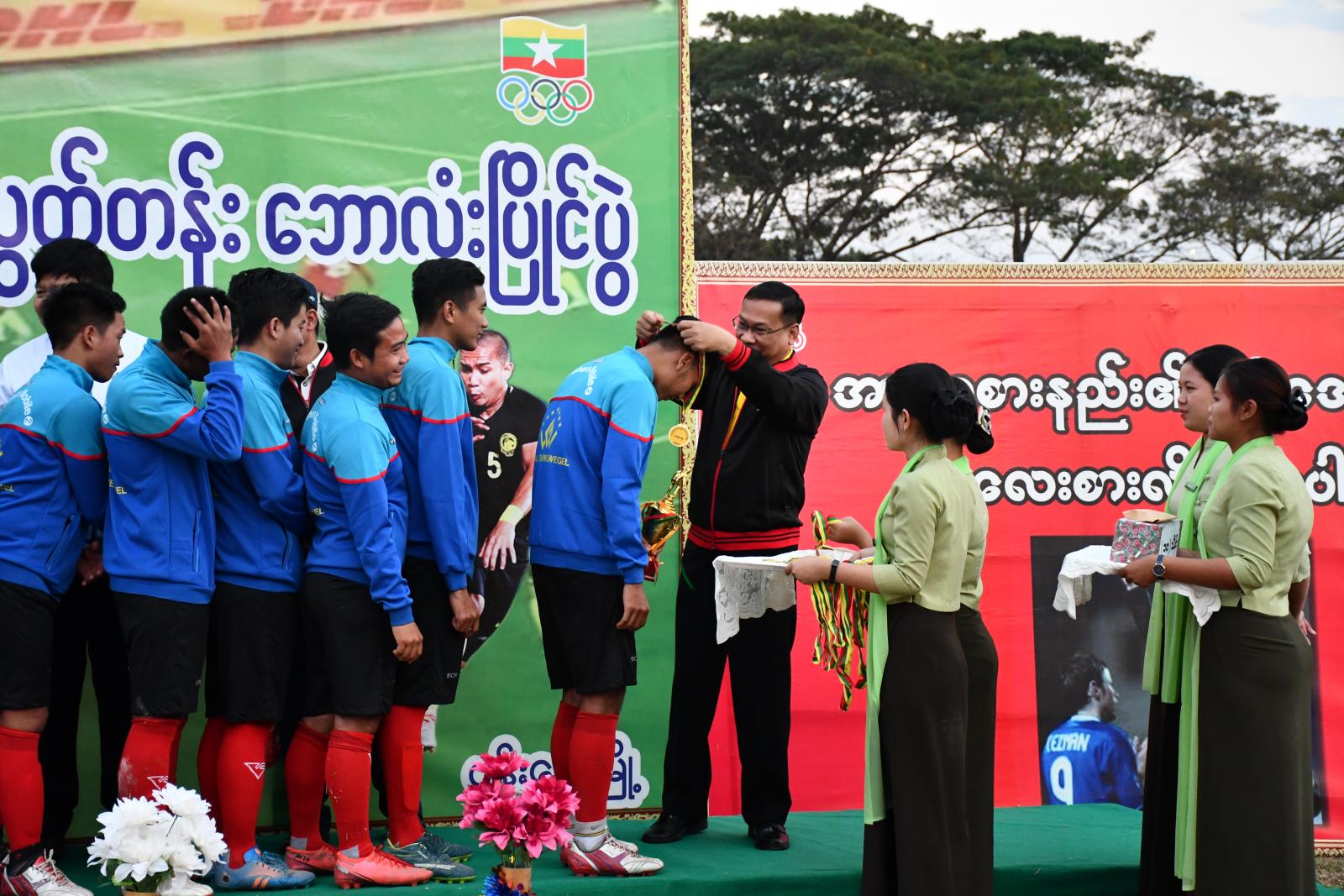 ဆက်လက်၍ ဆုချီးမြှင့်ခြင်းကျင်းပရာ ပထမ၊ ဒုတိယ၊ တတိယရရှိသည့် အသင်းများအား ဆုဖလား၊ ဆုငွေနှင့်လည်ဆွဲပြားများကိုလည်းကောင်း၊ ပွဲစဉ်အတွင်းနေရာအလိုက် အကောင်းဆုံး အားကစားသမားဆုများ၊ ဒိုင်များနှင့် ကျန်းမာရေးစောင့်ရှောက်ပေးသည့် အဖွဲ့များကိုဂုဏ်ပြု လက်ဆောင်နှင့် ဆုငွေများကိုလည်းကောင်း တာဝန်ရှိသူများက အသီးသီးပေးအပ်ချီးမြှင့်ခဲ့ရာ ပထမဆုရရှိသည့် ပြည်ထဲရေးအသင်းအား ဆုဖလားနှင့်ဆုငွေ၊ လည်ဆွဲများကို ခရိုင်စီမံအုပ်ချုပ်ရေး အဖွဲ့ဥက္ကဋ္ဌ ဦးခင်မောင်လွင်က ပေးအပ်ချီးမြှင့်ခဲ့ကြောင်း သိရပါသည်။