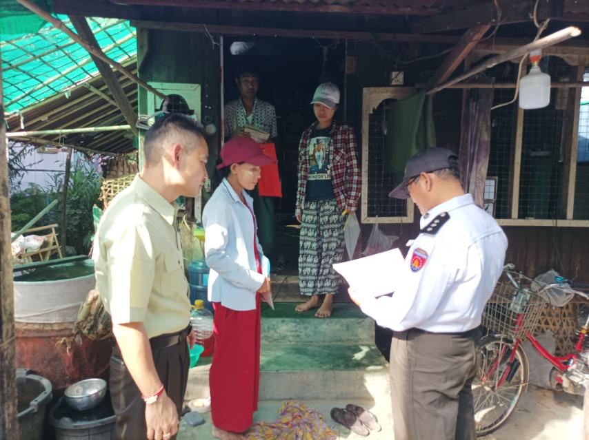 အဆိုပါ မြေပြင်တစ်အိမ်တက်တစ်အိမ်ဆင်း စာရင်းကောက်ယူခြင်းလုပ်ငန်းများကို ဌာနဆိုင်ရာ ဝန်ထမ်းများ၊ ရပ်ကွက်စာရေး၊ ရာအိမ်မှူး၊ ဆယ်အိမ်မှူး၊ အရန်မီးသတ်၊ ကြက်ခြေနီ၊ စေတနာ့ဝန်ထမ်း၊ လူမှုရေးအဖွဲ့များနှင့် လုံခြုံရေးအဖွဲ့များပါဝင်သော ပူးပေါင်းအဖွဲ့များမှ အိမ်ထောင်စုစာရင်းများ မှန်ကန်စေရေးအတွက် သတ်မှတ်စာရင်းပုံစံများဖြင့် ကောက်ယူလျက်ရှိကြောင်းနှင့် မြေပြင်စာရင်းကောက်ယူခြင်းလုပ်ငန်းများကို ဇန်နဝါရီလ ၉ ရက်နေ့မှ ၃၁ ရက်နေ့အထိ ကောက်ကွက်များအားလုံးအား တစ်ပြိုင်နက်တည်း ဆက်လက်၍ စာရင်းများကောက်ယူ သွားမည်ဖြစ်ပြီး ကွင်းဆင်းကောက်ယူနေမှု့များကို မြို့နယ်စီမံအုပ်ချုပ်ရေးအဖွဲ့ဥက္ကဋ္ဌ ဦးအောင်ရဲနှင့် အဖွဲ့ဝင်များ၊ မြို့နယ်လူဝင်မှုကြီးကြပ်ရေးနှင့် ပြည်သူ့အင်အားဦးစီးဌာနမှ မြို့နယ်ဦးစီးမှူး ဦးမောင်မောင်သန့်နှင့် ဝန်ထမ်းများက လှည့်လယ်ကြည့်ရှု၍ လိုအပ်ချက်များ အား ဖြည့်စီးဆောင်ရွက်ပေးခဲ့ကြောင်း သိရသည်။