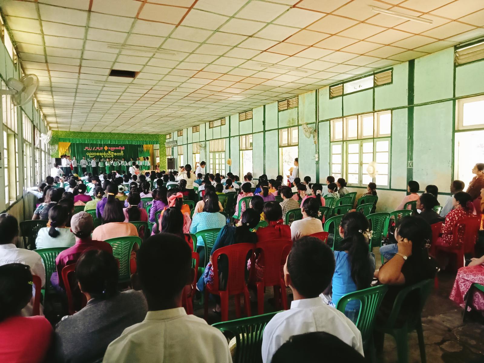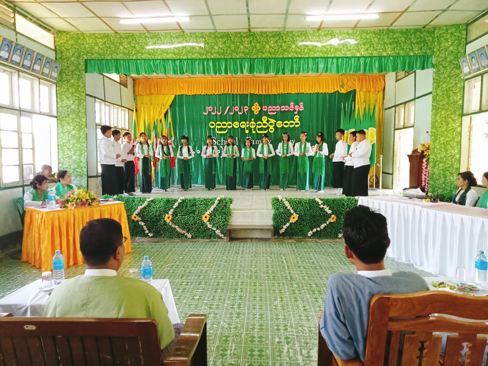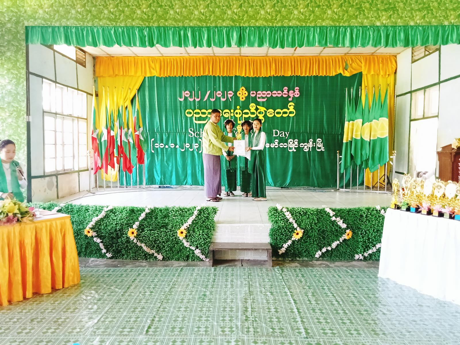 အခမ်းအနားတွင် မြို့နယ်စီမံအုပ်ချုပ်ရေးအဖွဲ့ကိုယ်စား ဒုတိယမြို့နယ်အုပ်ချုပ်ရေးမှူး ဦးသက်နိုင်ထွေး၊ မြို့နယ်စည်ပင်သာယာရေးအဖွဲ့၊ အမှုဆောင်အရာရှိ ဒုတိယညွှန်ကြားရေးမှူး ဦးမင်းဇော်နှင့် မြို့နယ်ပညာရေးမှူး ဒေါ်မြင့်မြင့်စန်းတို့မှ အဖွင့်အမှာစကားပြောကြားခဲ့ပြီး ၂၀၂၂/၂၀၂၃ ပညာသင်နှစ်အတွင်း မြို့နယ်အဆင့်လူရည်ချွန်ရွေးချယ်ရေးပြိုင်ပွဲ၊ အင်္ဂလိပ ်စွမ်းရည်ပြိုင်ပွဲ၊ သင်္ချာစွမ်းရည်ပြိုင်ပွဲ၊ ကမ္ဘာ့ခရီးသွားနေ့ စာစီစာကုံးပြိုင်ပွဲ၊ မာစုရှိတကိုးနိုးစကေ့ ဘဝဇာတ်ကြောင်း စိတ်ခံစားမှုပြိုင်ပွဲ၊ (၃၀) နှစ်မြောက်ကမ္ဘာ့ကလေးများနေ့ ပန်းချီပြိုင်ပွဲ၊ မစ်ဆူဘီရှီ အာရှကလေးပြိုင်ပွဲ (Grand Prix)၊ စိန်ရတုလွတ်လပ်ရေးနေ့ ခရိုင်အဆင့် စာစီစာကုံး/ဆောင်းပါးပြိုင်ပွဲများတွင် ထူးချွန်ဆုများရရှိခဲ့သော ကျောင်းသားကျောင်းသူ (၄၇) ဦးနှင့် ခရိုင်/မြို့နယ်အဆင့် ကျောင်းသားအားကစားပွဲတော်တွင် အပြေးပြိုင်ပွဲ၊ အလျားခုန်၊ သုံးဆင့်ခုန်၊ အမြင့်ခုန်၊ ပိုက်ကျော်ခြင်း၊ ဘော်လီဘော၊ ဘောလုံးအားကစားပြိုင်ပွဲများ၌ ထူးချွန်ဆုရရှိသော ကျောင်းသားကျောင်းသူ (၂၄) ဦးတို့အား အခမ်းအနားသို့ တက်ရောက် လာကြသော မြို့နယ်အဆင့် ဌာနဆိုင်အကြီးအကဲများက ဂုဏ်ပြုဆုများ အသီးသီး ပေးအပ်ချီးမြှင့်ခဲ့ပြီး မြို့နယ်အတွင်းရှိ အခြေခံပညာကျောင်းပေါင်းစုံမှ ကျောင်းသား၊ ကျောင်းသူလေးများက တေးသီချင်းများဖြင့် သီဆိုဖျော်ဖြေခြင်း၊ တေးသရုပ်ဖော် ဖျော်ဖြေခြင်းများ ဆောင်ရွက်ခဲ့ကြောင်း သိရသည်။
