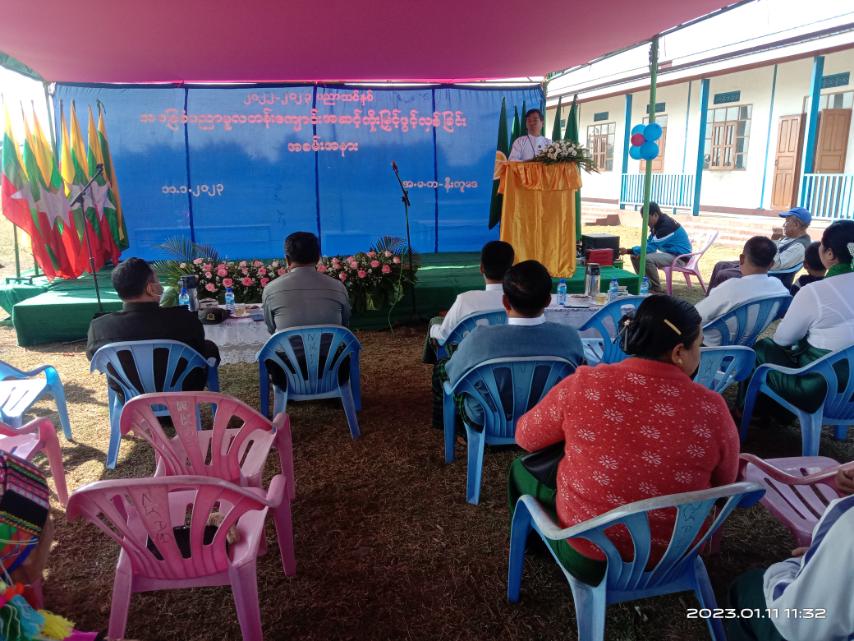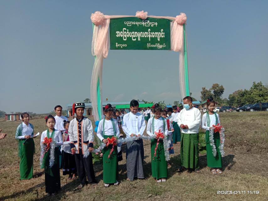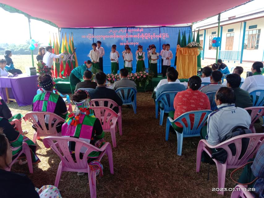 ရှေးဦးစွာ ကျောင်းသား/သူလေးများက “မြန်မာ့ကျောင်း” တေးသီချင်းအား သီဆိုကာ အခမ်းအနားကို ဖွင့်လှစ်ခဲ့ပြီး မြစ်ကြီးနားခရိုင် ပညာရေးမှူး ဒုတိယညွှန်ကြားရေးမှူး ဦးရဲအောင်မှ ပညာရေးကဏ္ဍတွင် အခြေခံပညာ ကျောင်းများ ဖွံ့ဖြိုးတိုးတက်စေရေး ဆောင်ရွက်ချက်များနှင့် ကျောင်းအဆင့်တိုးမြှင့် ဖွင့်လှစ်နိုင်ခြင်းကြောင့် ကျောင်းသား/သူများနှင့် မိဘအုပ်ထိန်းသူများအနေဖြင့် ကျေးရွာမှကွားဝေးသည့် ကျောင်းများသို့ သွားရောက်ရန် မလိုအပ်ပဲ မိမိကျေးရွာ၌ မူလတန်းအဆင့်အထိ ကျောင်းပညာများအား ဆက်လက်သင်ယူ နိုင်မည် ဖြစ်ပါကြောင်း အဖွင့်အမှာစကားပြောကြားကာ မြို့နယ်စိမံအုပ်ချုပ်ရေးအဖွဲ့ဝင် ဦးကြည်ထွန်းမှ ကျောင်းအဆင့် တိုးမြှင့်ဖွင့်လှစ် ပေးခြင်းအား ကျေးဇူးတင်စကား ပြောကြားခဲ့သည်။