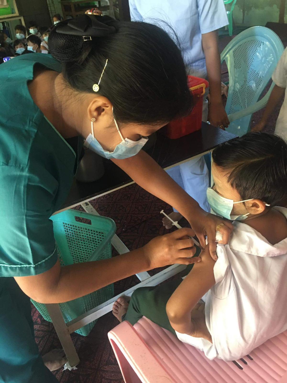 အဆိုပါ ကာကွယ်ဆေးများ ထိုးနှံပေးရာတွင် ကိုဗစ်-၁၉ရောဂါကာကွယ်ဆေး (၂)ကြိမ်ဆက်တိုက် ထိုးနှံပြီးစီးမှု (၆)လပြည့်ပြီးသည့် KG တန်းမှ Grade-5 တန်းထိ အသက်(၅)နှစ်မှ (၁၂)နှစ်အတွင်းရှိ ကျောင်းသား၊ ကျောင်းသူ (၁၉၉)ဦးကို ကျန်းမာရေးဝန်ကြီးဌာနမှ ထုတ်ပြန်ထားသည့် ကိုဗစ်-၁၉ ရောဂါကာကွယ်ရေးလမ်းညွှန်ချက်များနှင့်အညီ ထိုးနှံပေးခဲ့ကြောင်းနှင့် ကျေးလက်ကျန်းမာရေးဦးစီးဌာနမှ ဆရာမများ၏ ကာကွယ်ဆေးထိုးနှံပေးမှုကို အထကကျောင်းမှ ဆရာမများက လိုအပ်သည်များ ကူညီဆောင်ရွက်ပေးခဲ့ကြောင်း သိရသည်။