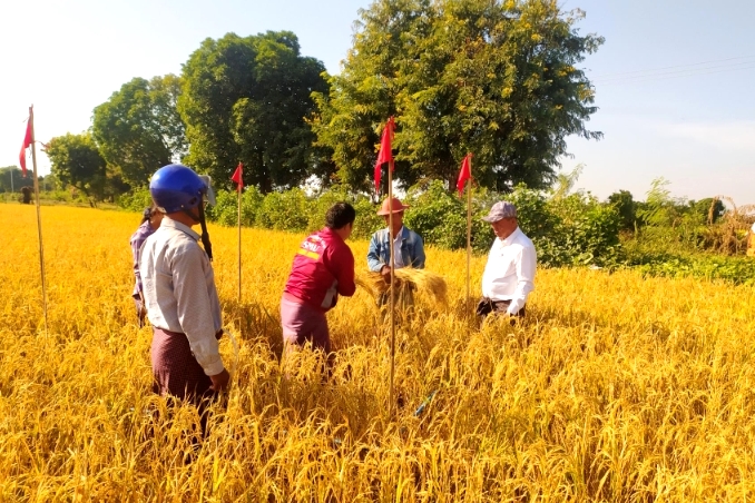 မန္တလေးတိုင်းဒေသကြီး၊ ကျောက်ဆည်မြို့နယ်တွင် ဆန်စပါးဖူလုံရေး တိုက်နယ်(၁၂)ခု၊ ကွင်းပေါင်း(၂၂၂)ကွင်း၌ စပါးသီးနှံ (၅၂၄၆၁) ဧက စိုက်ပျိုးထားပြီး ယနေ့နံနက်(၉)နာရီက သင်တောင်းကျေးရွာ၊ ကွင်းအမှတ် (၁၄၅)၊ ဦးပိုင်အမှတ်(၃၂) တောင်သူဦးမြိုင်၏ ဧရာမင်း မိုးစပါး စိုက်ခင်းအား စံကွက်ရိတ်သိမ်းရာ တစ်ဧကစပါး အခြောက် (၈၂.၂၅)တင်း ထွက်ရှိကြောင်း မြို့နယ်လယ်ယာ မြေစီမံခန့်ခွဲရေးနှင့် စာရင်းအင်းဦးစီးဌာနမှ သိရသည်။