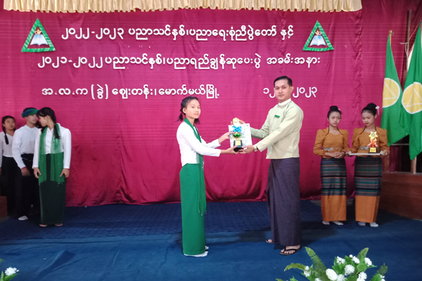 ဆက်လက်ပြီး ကာယဉာဏထူးချွန်ဆုရရှိကြသည့် ကျောင်းသား၊ ကျောင်းသူများအား တာဝန်ရှိသူများက ဆုများအသီးသီးပေးအပ်ချီးမြှင့်ခဲ့ကြပြီး ကျောင်းသားကျောင်းသူလေးများက တေးသရုပ်ဖော် တိုင်းရင်းသား ရိုးရာအကအလှများဖြင့် သီဆိုဖျော်ဖြေကပြခဲ့ကြပြီး ကျောင်းသားကျောင်းသူ လေးများက “ ကမ္ဘာ့အဆင့်မီ ပညာရည် ” သီချင်းဖြင့်သီဆိုဖျော်ဖြေကြ၍ အခမ်းအနားအား ရုပ်သိမ်းခဲ့ကြောင်း သိရသည်။