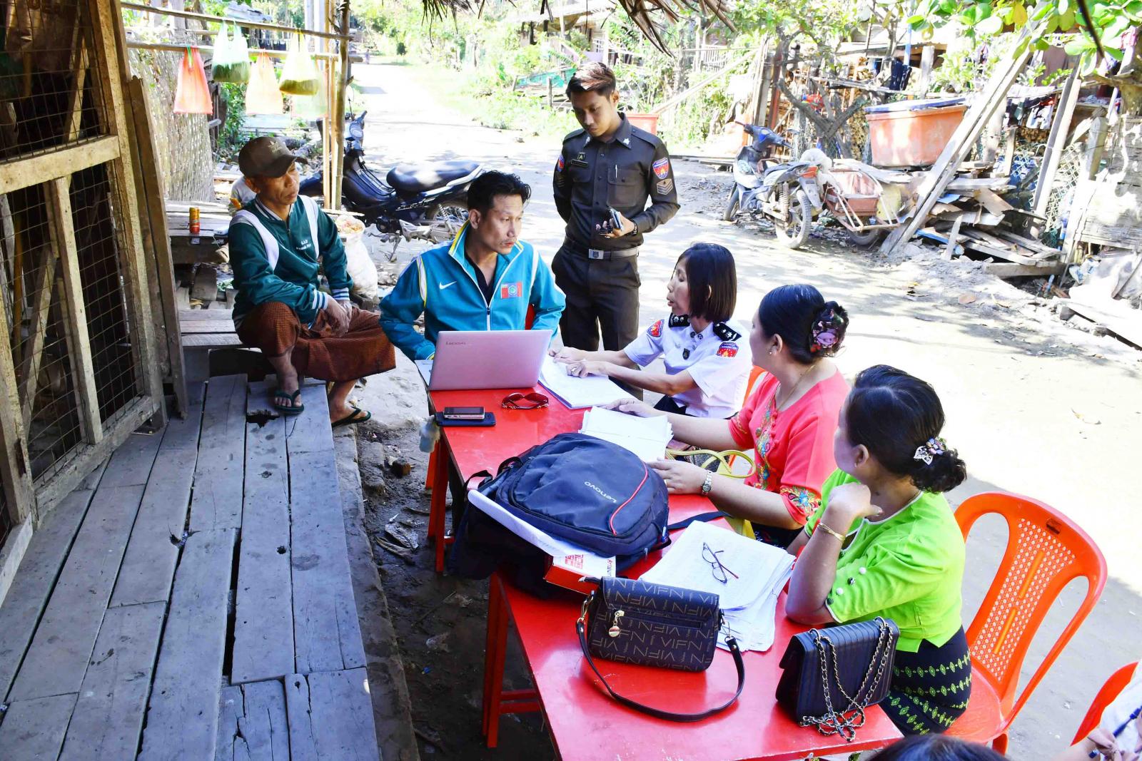 ရခိုင်ပြည်နယ်၊ ကျောက်ဖြူမြို့၌ အိမ်ထောင်စုလူဦးရေစာရင်းမှန်ကန်မှုရှိစေရေးအတွက် မြေပြင်ကွင်းဆင်းစာရင်းကောက်ယူရေးအဖွဲ့ (Working Group) (၁၃၃)ဖွဲ့ဖြင့် မြို့နယ်အတွင်းရှိ ရပ်ကွက်/ ကျေးရွာအုပ်စုများအလိုက် တစ်အိမ်တက်ဆင်းသွားရောက်ကာ ကွင်းဆင်းတိုက်ဆိုင်စစ်ဆေးခြင်းလုပ်ငန်းများကို ဆောင်ရွက်လျက်ရှိသည်။