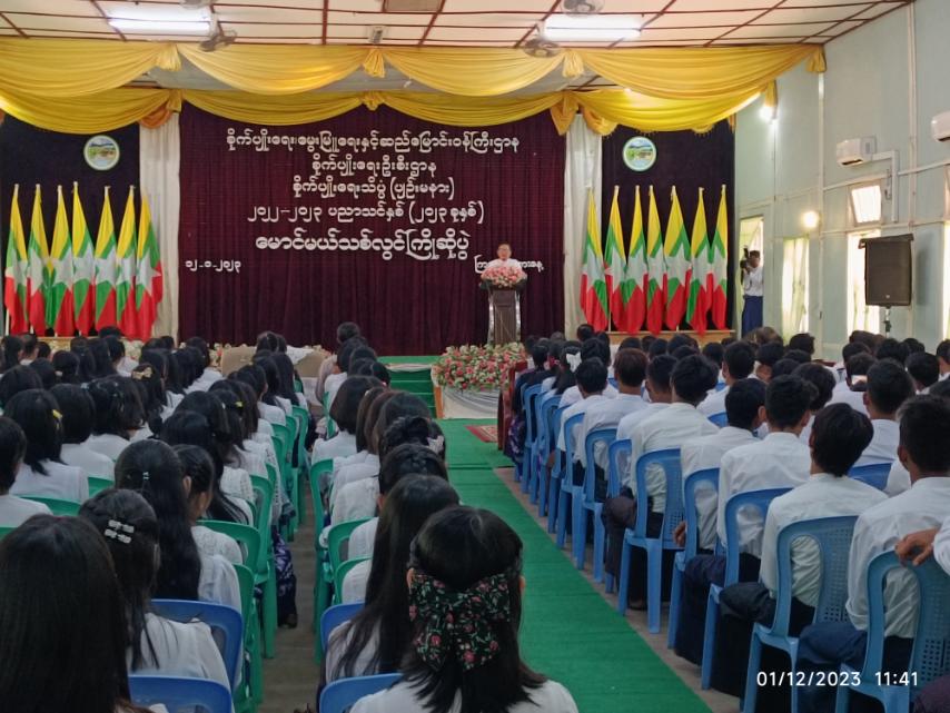 ပျဉ်းမနားမြို့၊ ရွှေချီရပ်ကွက်ရှိ စိုက်ပျိုးရေး၊ မွေးမြူရေးနှင့်ဆည်မြောင်းဝန်ကြီးဌာန၊ စိုက်ပျိုးရေးဦးစီးဌာန၊ စိုက်ပျိုးရေးသိပ္ပံ(ပျဉ်းမနား)ရှိ စုဝေးခန်းမဆောင်၌ ၂၀၂၂-၂၀၂၃ ပညာသင်နှစ်(၂၀၂၃ ခုနှစ်) မောင်မယ်သစ်လွင်ကြိုဆိုပွဲကို ယနေ့နံနက်ပိုင်းက ကျင်းပပြုလုပ်ခဲ့သည်။