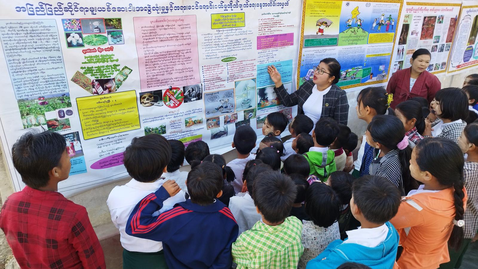 ပြန်ကြားရေးနှင့်ပြည်သူ့ဆက်ဆံရေးဦးစီးဌာနမှ ကျောင်းသား၊ ကျောင်းသူလေးများကို၊ လွတ်လပ်ရေးနေ့အထိမ်းအမှတ်၊ လူကုန်ကူးမှုတိုက်ဖျက်ရေးနေ့အထိမ်းအမှတ် နံရံကပ်စာစောင်၊ ကလေးအလုပ်သမားပပျောက်ရေးအသိပညာပေး နံရံကပ်စာစောင်၊သွေးလွန်တုပ်ကွေးအကြောင်း သိကောင်းစရာနံရံကပ်စာစောင်၊ အပြည်ပြည်ဆိုင်ရာမူးယစ်ဆေးဝါးအလွဲသုံးမှုနှင့် တရားမဝင်ရောင်းဝယ်မှုတိုက်ဖျက်ရေးအထိမ်းအမှတ် နံရံကပ်စာစောင်အား ပြသရာ ကျောင်းသား၊ ကျောင်းသူ (၅၇)ဦးမှ စိတ်ပါဝင်စားစွာ ကြည့်ရှုခဲ့ကြပြီး နယ်လှည့်စာကြည့်တိုက် အနေဖြင့် ယူဆောင်လာသော စာအုပ်စာစောင်များကို ဖတ်ရှုလေ့လာခဲ့ကြကြောင်းနှင့် သိရသည်။