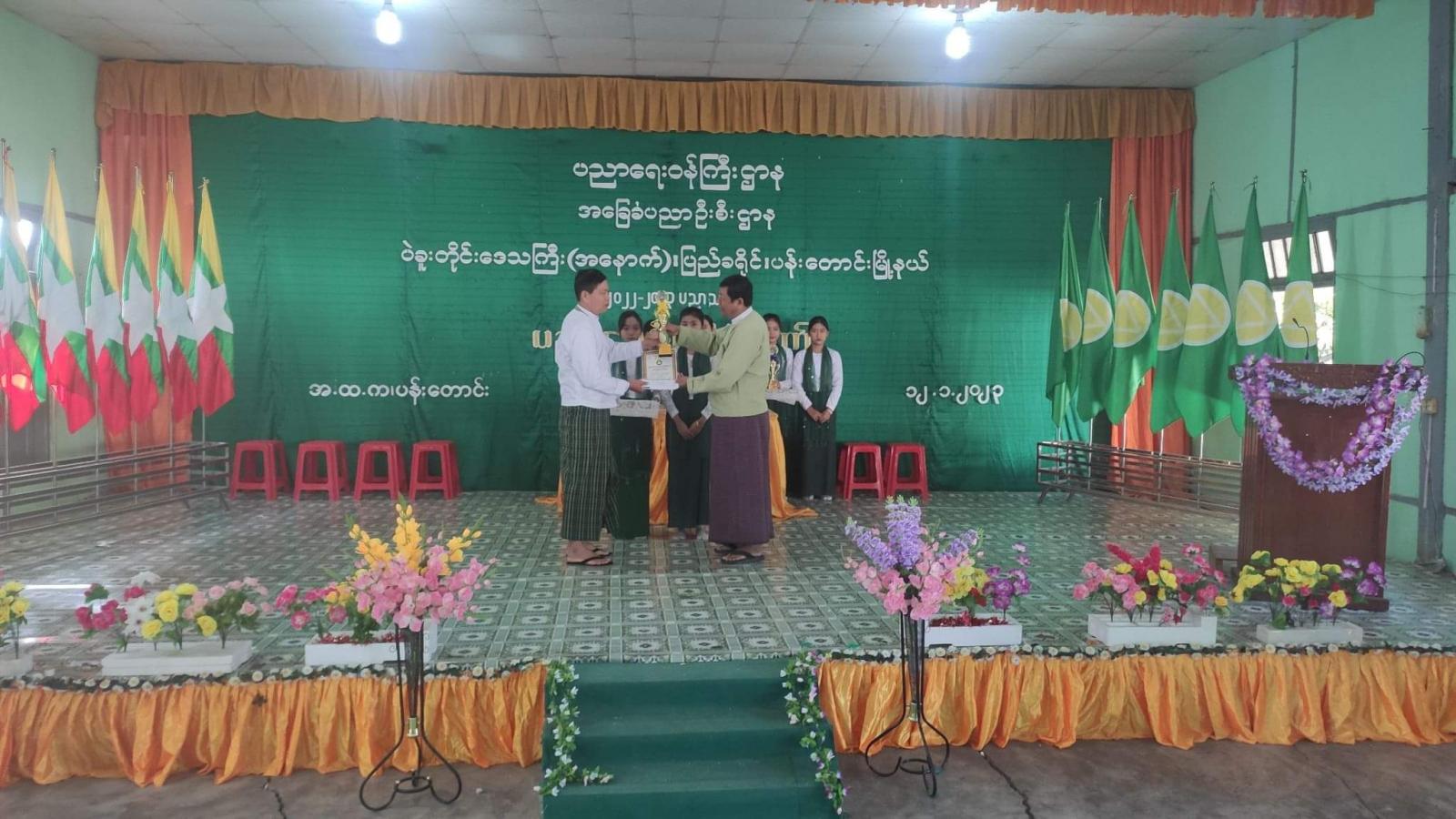 ပဲခူးတိုင်းဒေသကြီး၊ ပြည်ခရိုင်၊ ပန်းတောင်းမြို့နယ် အခြေခံပညာအထက်တန်းကျောင်း၌ ၂၀၂၂-၂၀၂၃ ပညာသင်နှစ်မြို့နယ် အဆင့်ပညာရေး စုံညီပွဲတော် အခမ်းအနားကို ယနေ့နံနက် (၉)အချိန်က အ.ထ.က (ပန်းတောင်း)အစည်းအဝေးခန်းမ၌ ကျင်းပခဲ့သည်။
