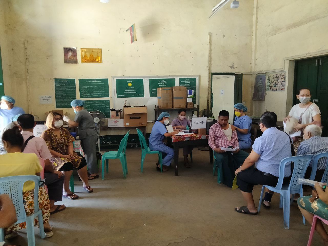 ရန်ကုန်တိုင်းဒေသကြီး၊ ပုဇွန်တောင်မြို့နယ်အတွင်း ကိုဗစ်-၁၉ရောဂါ ကြိုတင်ကာကွယ်ရေးအတွက် ကာကွယ်ဆေးထိုးနှံရန် အကျုံးဝင်သူ ပြည်သူများအား ကိုဗစ်-၁၉ရောဂါ ကာကွယ်ဆေးများ ထိုးနှံပေးလျက်ရှိရာ ယမန်နေ့ နံနက် ၉ နာရီက အမှတ်(၂)အခြေခံပညာ မူလတန်းကျောင်းတွင် ထိုးနှံပေးခဲ့သည်။
