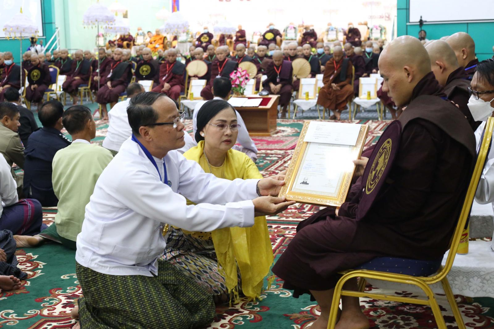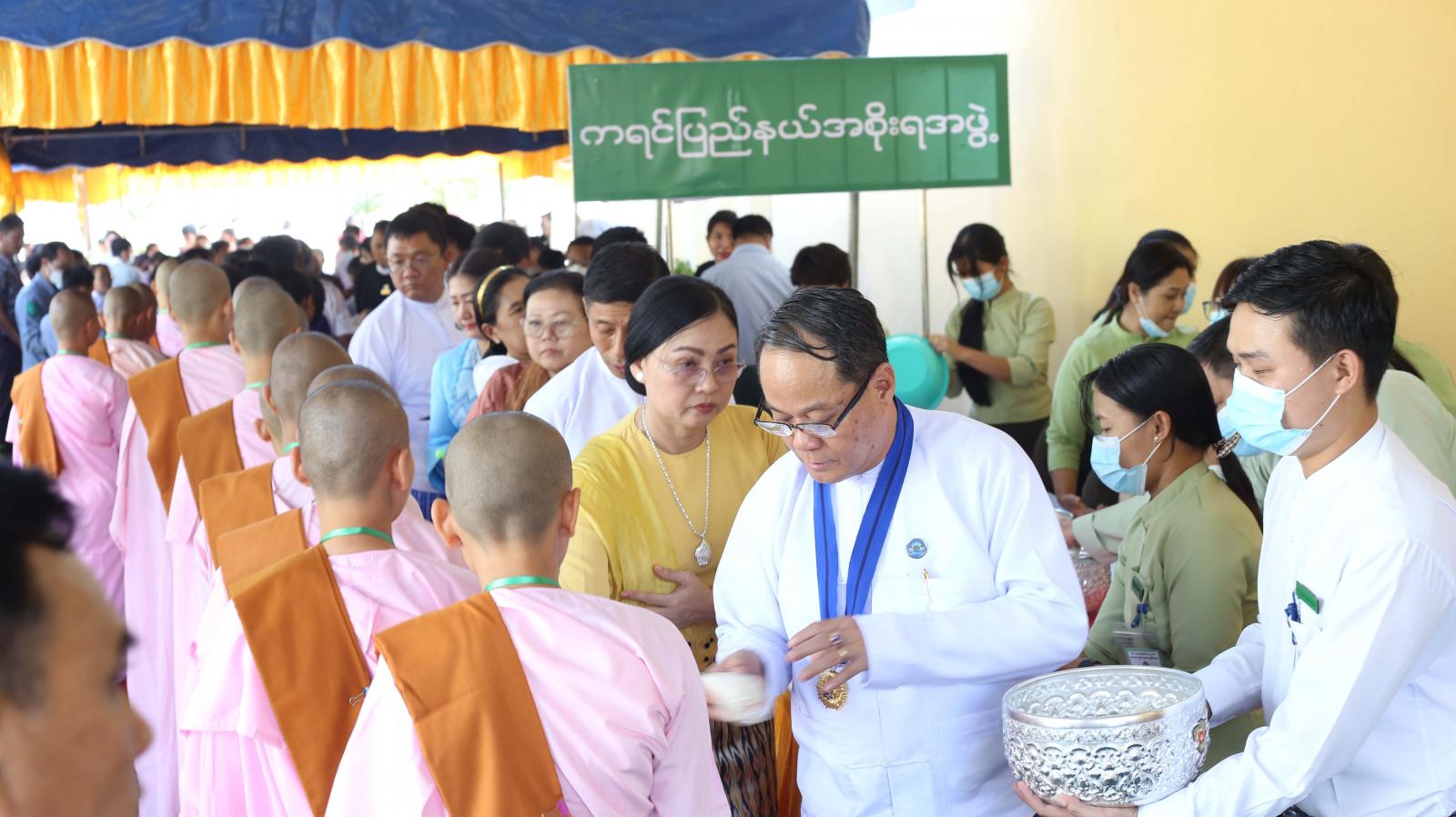 ထို့နောက် ကရင်ပြည်နယ်အစိုးရအဖွဲ့ ပြည်နယ်ဝန်ကြီးချုပ်ဦးစောမြင့်ဦးက သာသနာရေး ဆိုင်ရာများ လျှောက်ထားတင်ပြပြီး ပြည်နယ်ဝန်ကြီးချုပ်နှင့် အစိုးရအဖွဲ့ဝင်များက အထူးပင့် သံဃာတော်အရှင်သူမြတ်များအား လှူဖွယ်ဝတ္ထုပစ္စည်းများနှင့် နဝကမ္မအလှူတော်ငွေများ ဆက်ကပ်လှူဒါန်းခဲ့ကြပြီး ပြည်နယ်ဝန်ကြီးချုပ်နှင့်ဇနီး၊ ပြည်နယ်တရားလွှတ်တော်တရားသူကြီးချုပ်၊ ပြည်နယ်အစိုးရအဖွဲ့ဝင်များနှင့် ၎င်းတို့၏ ဇနီးများ၊ ပြည်နယ်အဆင့် ဌာနဆိုင်ရာ အကြီးအကဲများက စာအောင်သံဃာတော်များ၊ သီလရှင်များနှင့် လူပုဂ္ဂိုလ်များအား အောင်လက်မှတ်နှင့် စာအောင်ဆု အလှူတော်ငွေများကို ဆက်ကပ် လှူဒါန်းခဲ့ကြသည်။