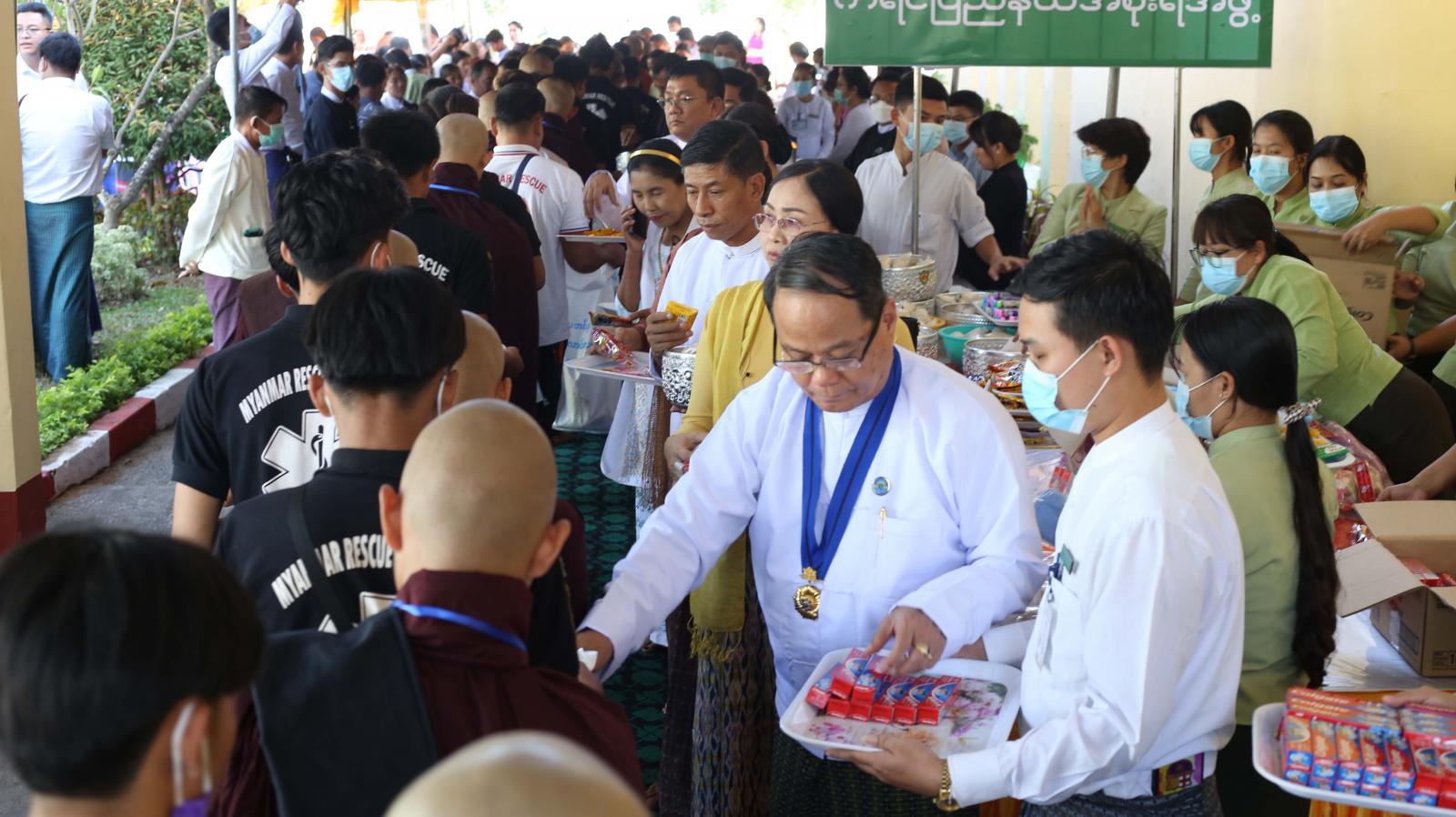 ဆက်လက်၍ ပြည်နယ်ဝန်ကြီးချုပ်နှင့်ဇနီး၊ ပြည်နယ်တရားလွှတ်တော်တရားသူကြီးချုပ်၊ ပြည်နယ်အစိုးရအဖွဲ့ဝင်များနှင့် ၎င်းတို့၏ ဇနီးများ၊ ပြည်နယ်၊ ခရိုင်၊ မြို့နယ်အဆင့် ဌာနဆိုင်ရာများက စာအောင်သံဃာတော်များ၊ သာမဏေများနှင့် သီလရှင်များအား ဆွမ်းဆန်စိမ်း လောင်းလှူခဲ့ကြကြောင်း သတင်းရသည်။