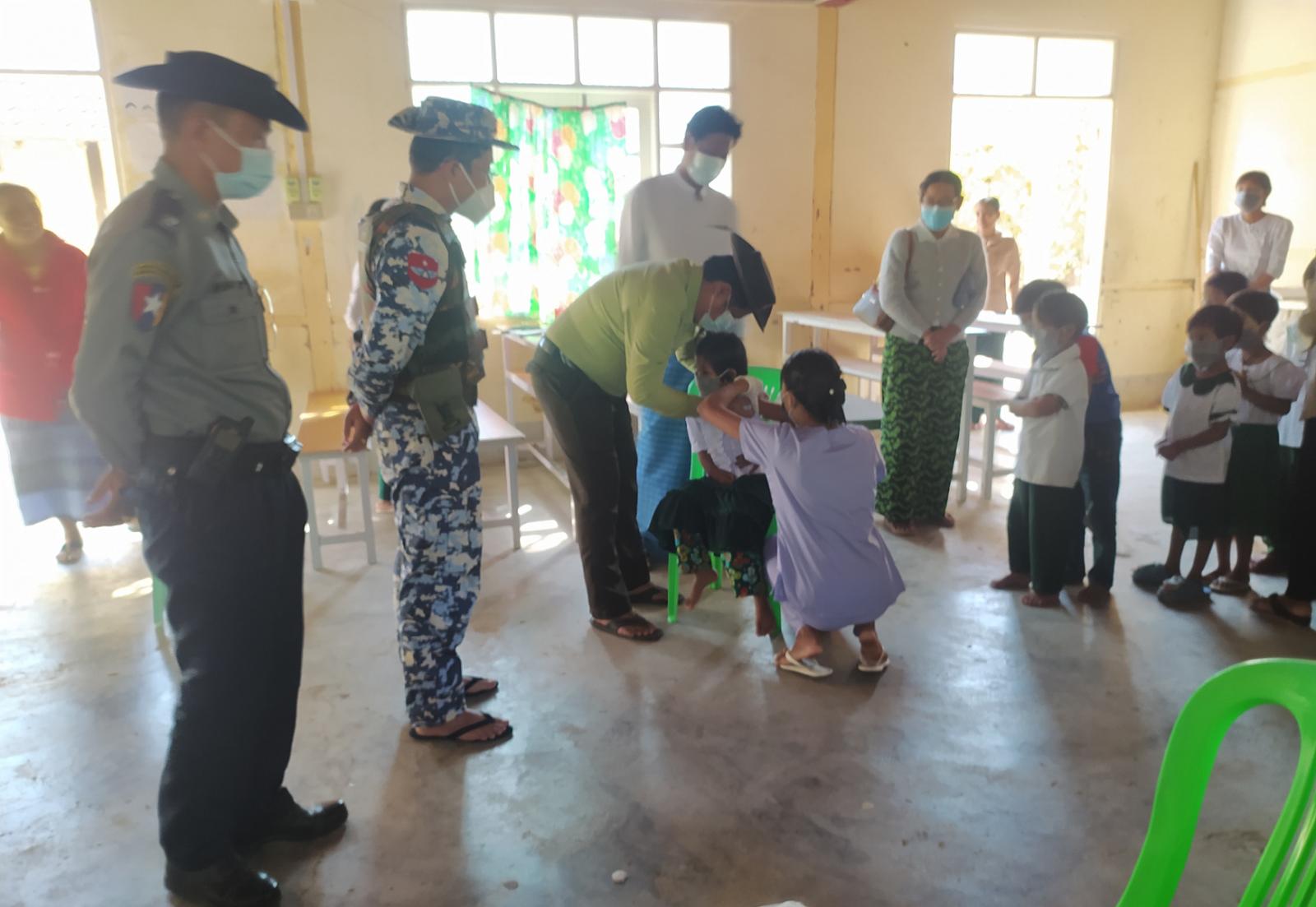 ကိုဗစ်-၁၉ ရောဂါ ထိန်းချုပ်၊ ကုသရေးဆောင်ရွက်ရာတွင် ကာကွယ်ဆေးထိုးနှံခြင်းသည် အဓိက အခန်းကဏ္ဍတွင် ပါဝင်သည့် လုပ်ငန်းဖြစ်သောကြောင့် ကျောင်းသား၊ကျောင်သူများ ကိုဗစ်-၁၉ ရောဂါကူးစက်မှု ကာကွယ်နိုင်ရေးအတွက် မြို့နယ်အထွေထွေအုပ်ချုပ်ရေးဦးစီးဌာန၊ ပညာရေး ဦးစီးဌာန၊ ကျန်းမာရေးဦးစီးဌာနတို့၏ ကူညီဆောင်ရွက်မှုဖြင့် ယနေ့တွင် အခြေခံပညာကျောင်း များမှ ကျောင်းသား၊ကျောင်းသူ (၆၁၈)ဦး၊စုစုပေါင်း(၂၅၆၃)ဦးကို သက်ဆိုင်ရာ ကျောင်းများအလိုက် ကျောင်းအုပ်ဆရာကြီးများ၏ ကြီးကြပ်မှုဖြင့် ကိုဗစ်-၁၉ ရောဂါ ကာကွယ်ဆေးကို ကျန်းမာရေး ဝန် ထမ်းများက ထိုးနှံပေးခဲ့ပြီး ကျန်ရှိနေသာ ကျောင်းသား၊ကျောင်းသူများကို ဆက်လက်ထိုးနှံပေးမည် ဖြစ်ကြောင်း သိရသည်။