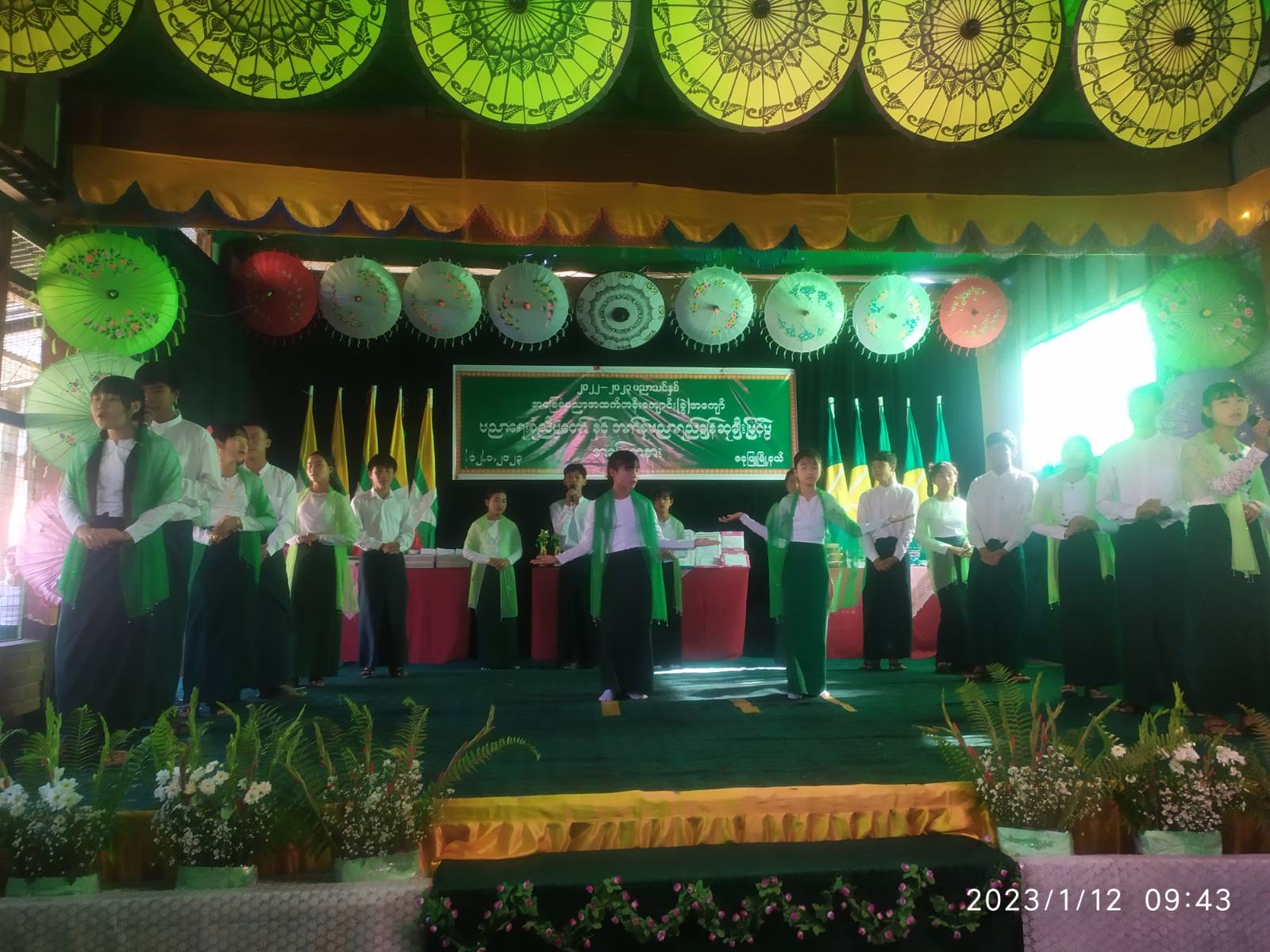 ဧရာဝတီတိုင်းဒေသကြီး၊ မအူပင်ခရိုင်၊ ဓနုဖြူနယ်တွင်၊ ၂၀၂၂-၂၀၂၃ပညာသင်နှစ် အခြေခံပညာ အထက်တန်းကျောင်း(ခွဲ)အကျော်၏ ပညာရေးစုံညီပွဲတော်နှင့် ဘက်စုံထူးချွန်ဆုပေးပွဲ အခမ်းအနားကို ယမန်နေ့ နံနက်ပိုင်းကကျောင်းခန်းမ၌ ကျင်းပသည်။