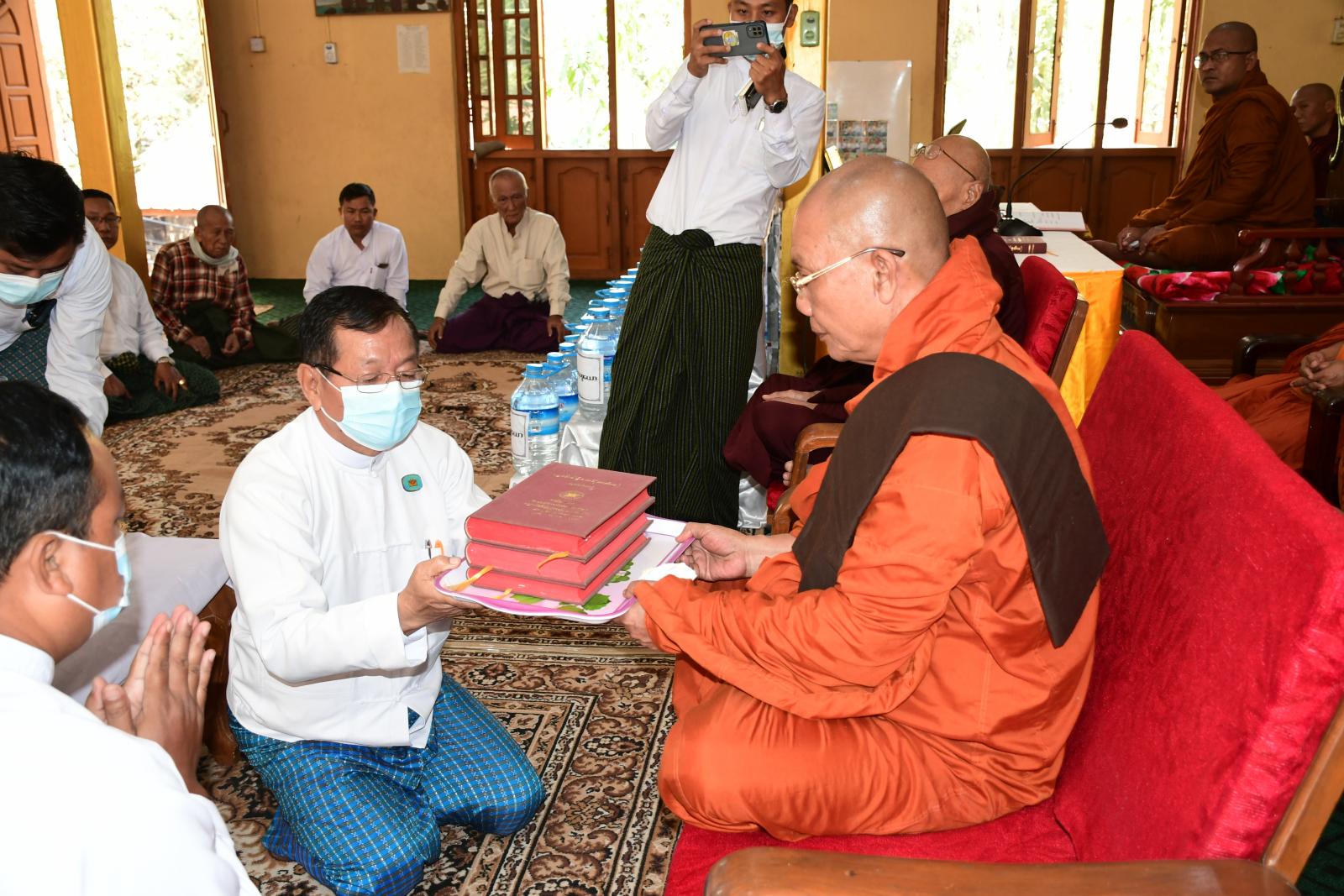 ဆက်လက်၍ မာရ်အောင်ကျောင်းတိုက်ဆရာတော် ဘဒ္ဒန္တဇာဂရမထေရ်မြတ်ထံ နေပြည်တော်ကောင်စီအဖွဲ့ဝင် ဦးမြင့်စိုးက ပဋ္ဌာန်းကျမ်းစာအုပ်များအားလည်းကောင်း၊ မြို့နယ် စီမံအုပ်ချုပ်ရေးအဖွဲ့ အဖွဲ့ဝင်နှင့် တာဝန်ရှိသူများက ပဋ္ဌာန်းပရိတ်ပန်းနှင့် ပရိတ်ရေများအားလည်းကောင်း အသီးသီး ဆက်ကပ်ကြသည်။