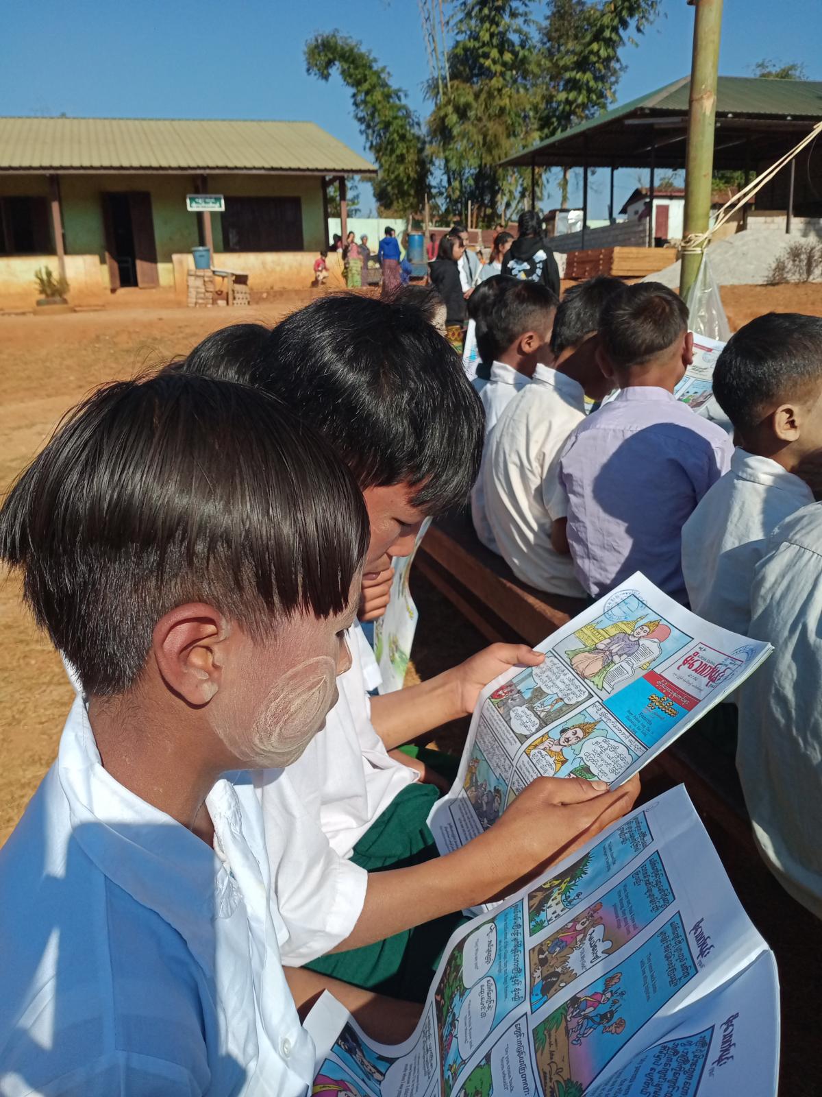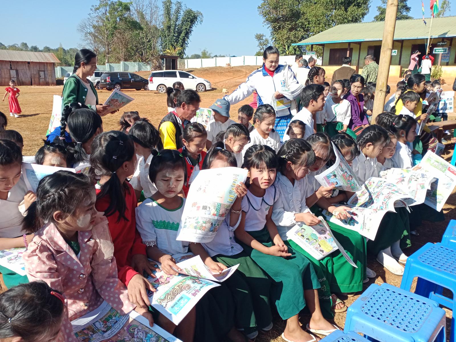 ရှမ်းပြည်နယ်(တောင်ပိုင်း)၊ မိုင်းနောင်မြို့ ပြန်ကြားရေးနှင့်ပြည်သူ့ဆက်ဆံရေးဦးစီးဌာန ရုံးဝန်ထမ်းများသည် စာဖတ်ရှိန်မြှင့်တင်ရေး လုပ်ငန်းအဖြစ် အခြေခံပညာ အလယ်တန်းကျောင်း(ခွဲ) လုံယန်းကျေးရွာသို့ စာအုပ်၊စာစောင်များကို ယမန်နေ့ နံနက်(၁၀) နာရီအချိန်က သွားရောက်ငှားရမ်းပေးခဲ့သည်။