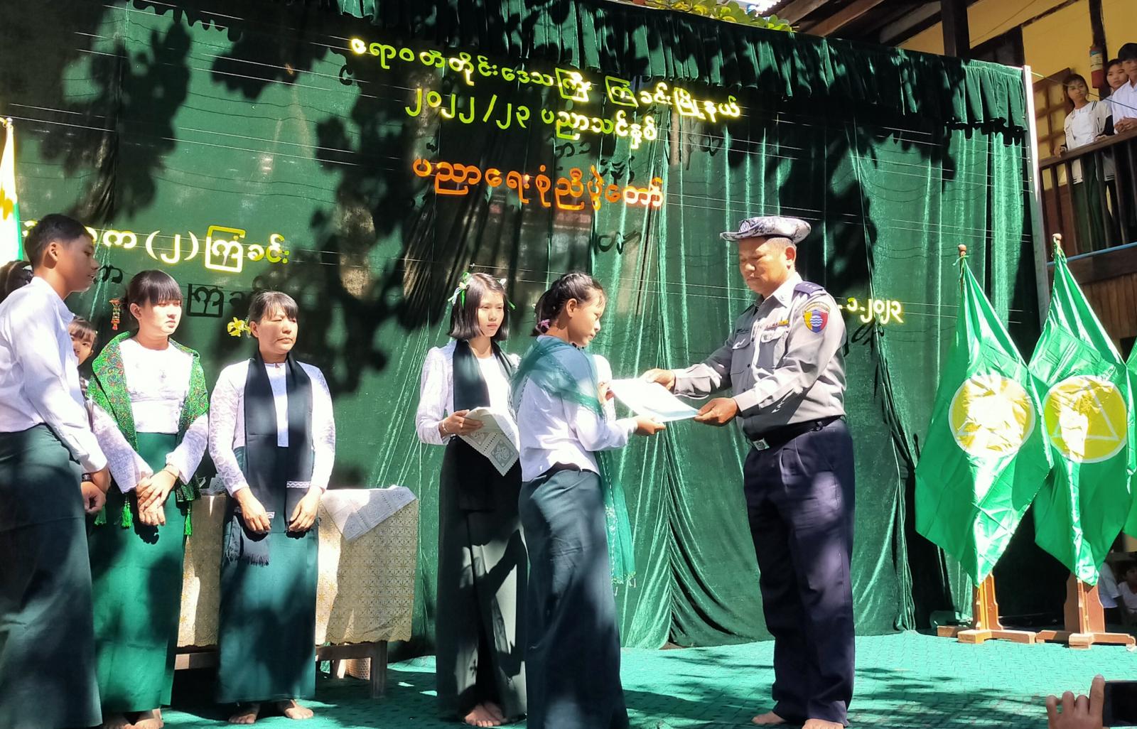 အခမ်းအနားသို့ မြို့နယ်စီမံအုပ်ချုပ်ရေးအဖွဲ့ဥက္ကဋ္ဌ ဦးသိန်းတန်၊ မြို့နယ်စီမံအုပ်ချုပ်ရေးအဖွဲ့ဝင်(၁) ဗိုလ်မှူးသန်းထွဋ်၊ မြို့နယ်ရဲတပ်ဖွဲ့မှူးဒုရဲမှူးစိုးငြိမ်း၊ မြို့နယ်အဆင့်ဌာနဆိုင်ရာအကြီးအကဲများ၊ (အ ထ က-၁) ကျောင်းအုပ်ဆရာမကြီးဒေါ်အေးအေးမော်၊ (အ ထ က-၂)ကျောင်းအုပ်ဆရာမကြီး ဒေါ်နွဲ့နွဲ့ဝင်းနှင့် ဆရာ/ ဆရာမများ၊ ဆုရကျောင်းသား/ သူများနှင့် ကျောင်းအကျိုးတော်ဆောင်များ၊ မိဘများတက်ရောက်ကြကြောင်းနှင့် (အ ထ က-၂) ကျောင်းသား/ သူများ၏ ပဒေသာအက၊အလှများဖြင့် ပျော်ရွှင်စွာကျင်းပခဲ့ကြောင်းသိရသည်။