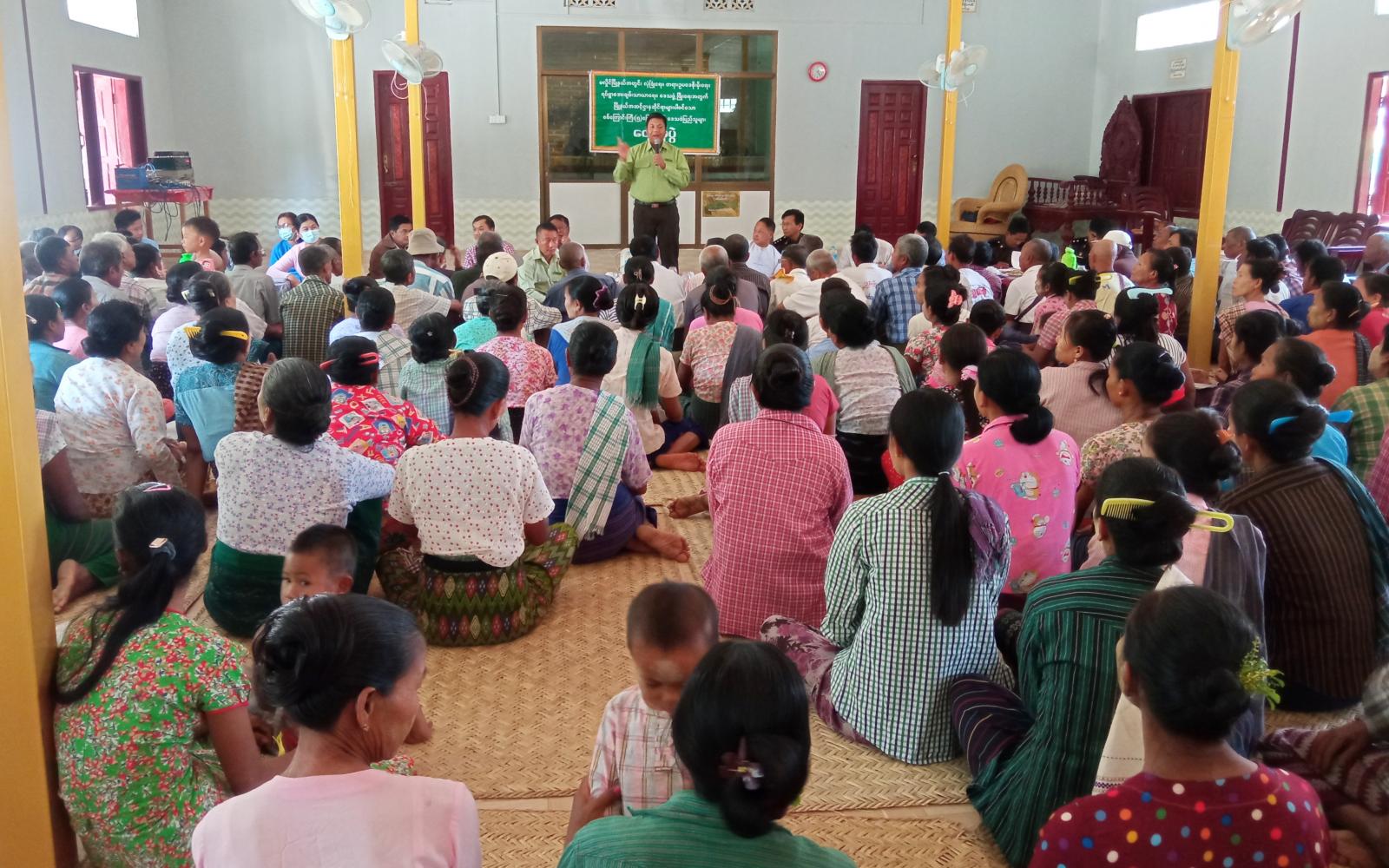 ရှေးဦးစွာမြို့နယ်စီမံအုပ်ချုပ်ရေးအဖွဲ့ဥက္ကဋ္ဌ၊ မြို့နယ်အုပ်ချုပ်ရေးမှူး ဦးစိုးမင်းထက်ကဒေသခံ ပြည်သူများနှင့် လာရောက်တွေ့ဆုံရသည့် ရည်ရွယ်ချက်များကို ရှင်းလင်းပြောကြားပြီး ပြည်သူများအတွက် အမှန်တကယ်လိုအပ်သည့် ဒေသဖွံ့ဖြိုးရေးကိစ္စများနှင့် ပတ်သက်၍ ပွင့်ပွင့်လင်းလင်းတင်ပြ ဆွေးနွေးပေးရန် ပြောကြားခဲ့သည်။
