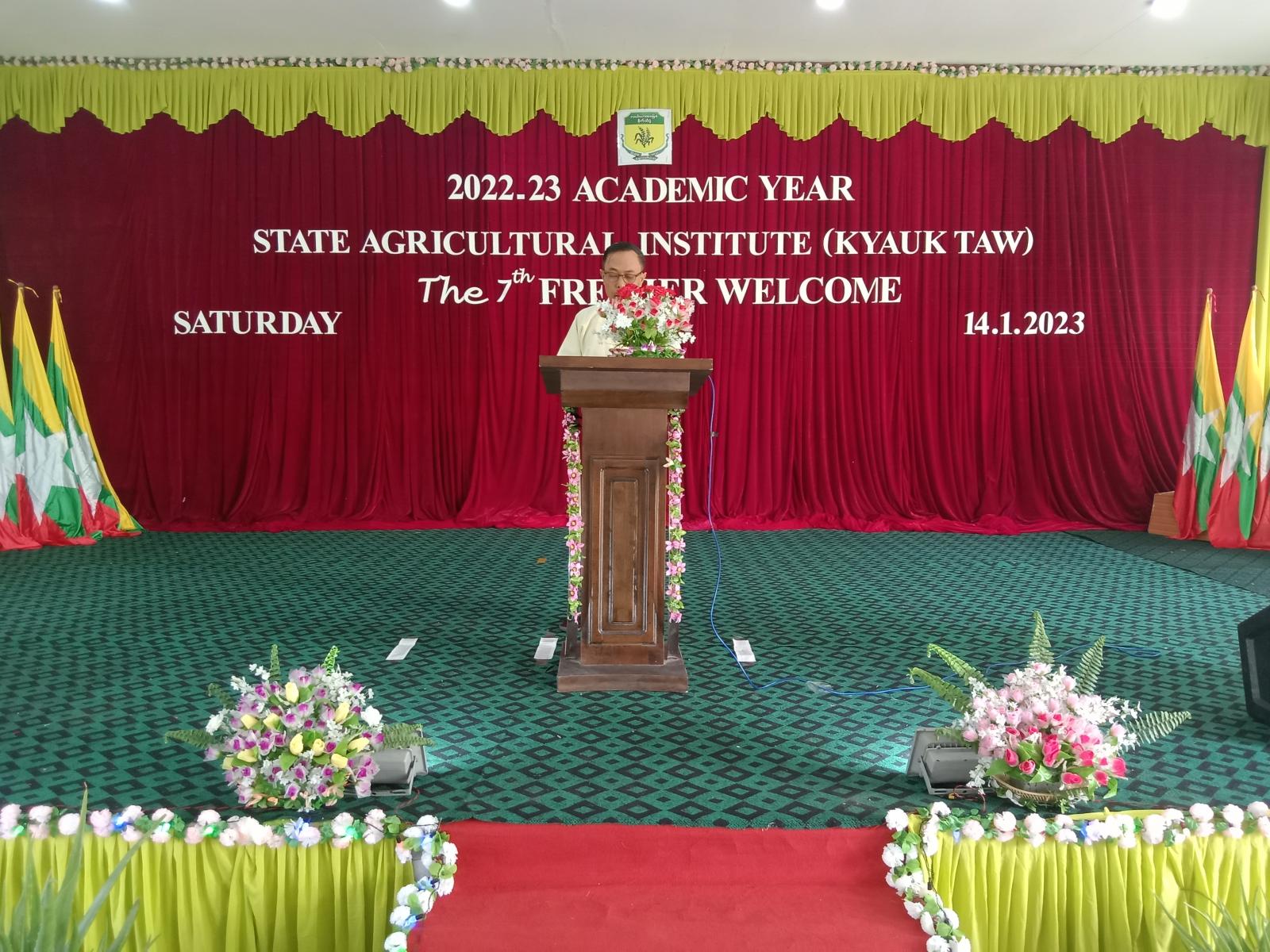 ရှေးဦးစွာ ပထမနှစ်ကျောင်းသူလေးများက "ထွန်းကားခလီ ဝေသာလိ" အကဖြင့် အခမ်းအနားကိုဖွင့်လှစ်ပြီးနောက် စိုက်ပျိုးရေးသိပ္ပံ(ကျောက်တော်)ကျောင်းအုပ်ဆရာကြီး ဦးခင်အောင်သန်းမှ အဖွင့်အမှာစကားပြောကြားရာ၌ စိုက်ပျိုးရေးသိပ္ပံ (ကျောက်တော်) ကျောင်းစတင်ဖြစ်ပေါ်လာပုံ အကျဉ်းအားရှင်းလင်းပြောကြားပြီးနောက် ရခိုင်ပြည်နယ်အတွက် အနာဂတ်၏စိုက်ပျိုးရေးလုပ်ငန်းများတွင် ဘက်စုံထောင့်စုံကနေပါဝင်ထမ်းဆောင်ကြမဲ့ လူတော်လူကောင်းများဖြစ်ပါကြောင်း၊ စိုက်ပျိုးရေးသိပ္ပံတွင် ပညာသင်ယူနေကြသော မောင် မယ်များအနေဖြင့် ကျောင်းသင်ခန်းစာများအားပြီးမြောက်အောင်သင်ယူပြီး တောင်သူလယ်သမားများ၏ လူမှုစီးပွားဘဝမြင့်တင်နိုင်ရေးတို့အတွက် ကူညီဖြည့်ဆည်းဆောင်ရွက်ပေးကြရန်လိုအပ်ကြောင်း၊ စိုက်ပျိုးရေးနည်းပညာရပ်များဖွံ့ဖြိုးတိုးတက်အောင် ဆောင်ရွက်ကြရန်လိုအပ်ပါကြောင်း ၂၀၂၂-၂၀၂၃ ပညာသင်နှစ် မောင်မယ်များအနေဖြင့် သင်ခန်းစာများ သင်ယူရာတွင် စိတ်ပါဝင်စားစွာလေ့လာသင်ယူကြရန်နှင့် စိုက်ပျိုးရေးပညာရှင်များဖြစ်လာအောင် ကြိုးစားလေ့လာသင်ယူကြရန် လိုအပ်ကြောင်းရှင်းလင်းမှာကြားခဲ့သည်။