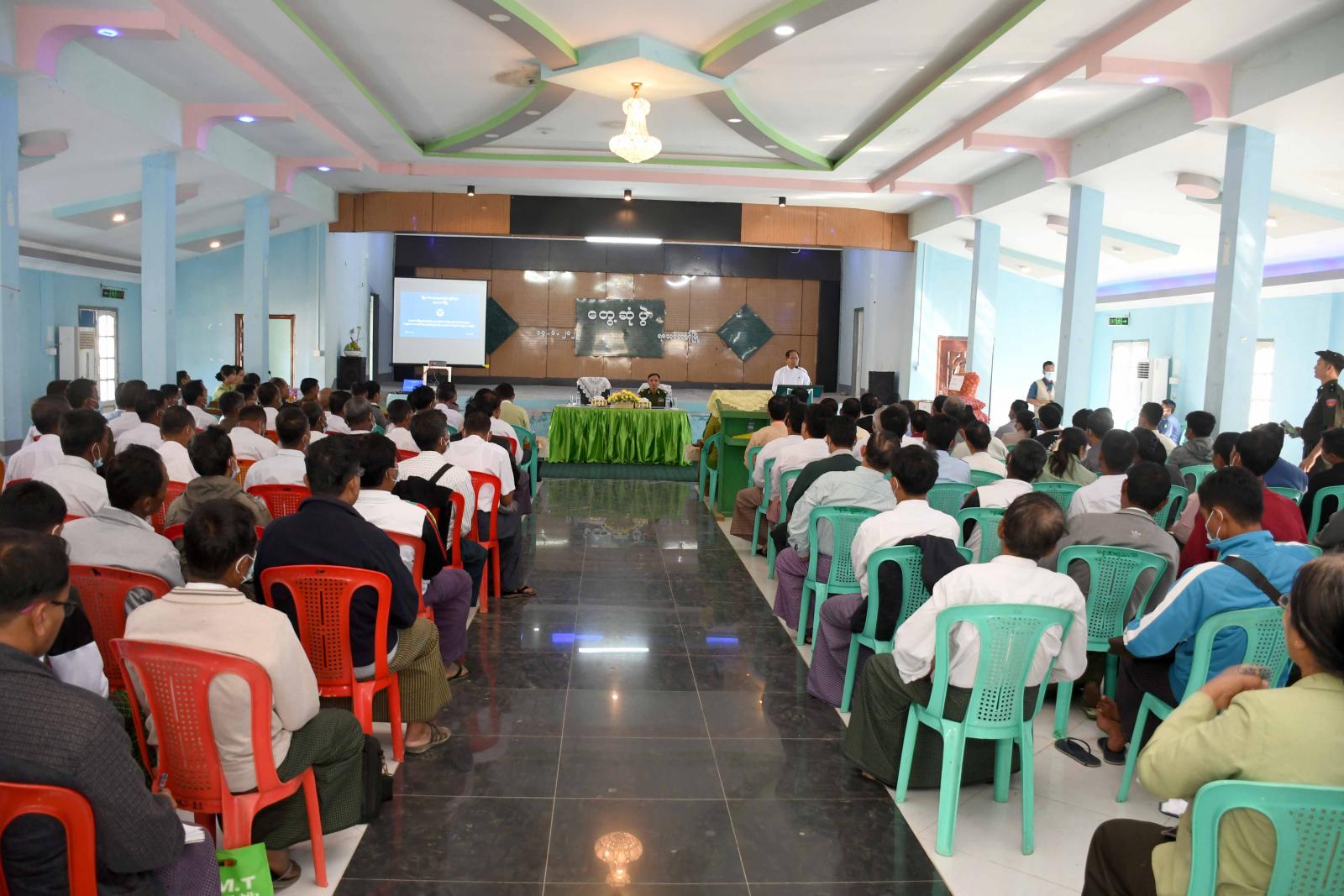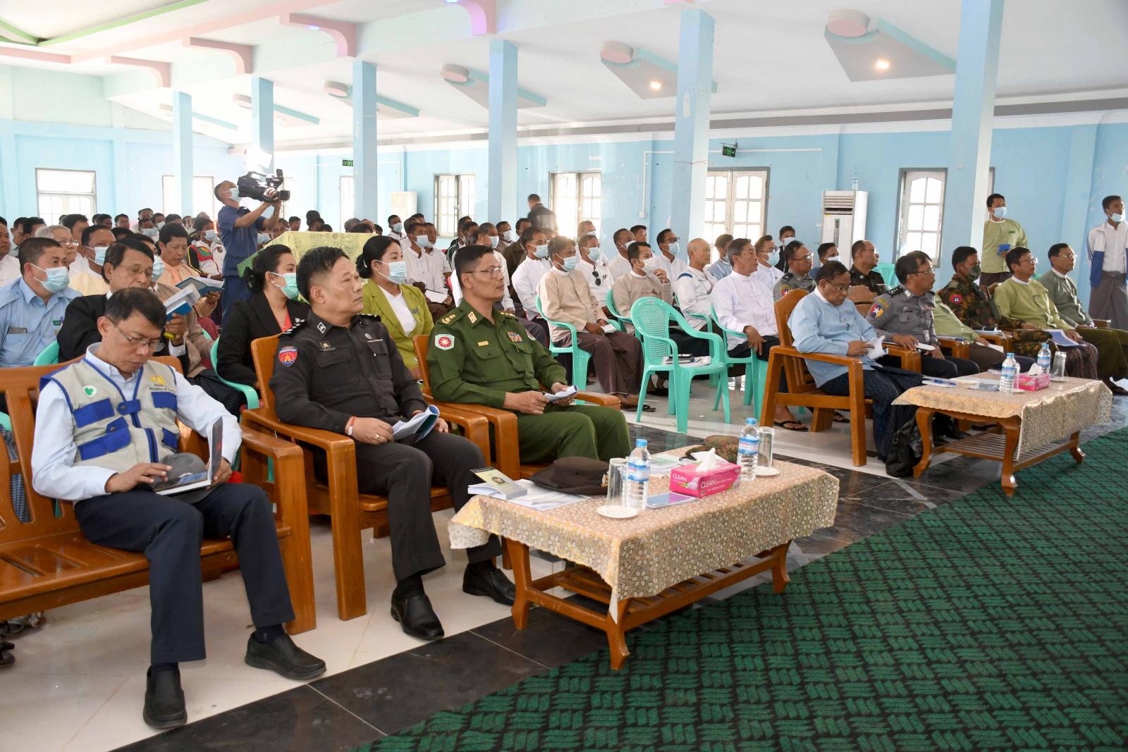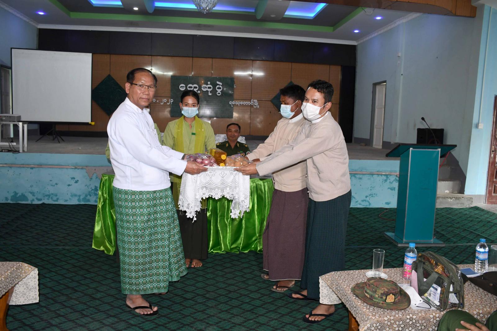 ထို့နောက် မြို့နယ်စီမံအုပ်ချုပ်ရေးအဖွဲ့ဥက္ကဋ္ဌက ဒေသဆိုင်ရာအချက်အလက်များအား ရှင်းလင်းတင်ပြပြီး ရပ်ကွက်၊ ကျေးရွာအုပ်စုအုပ်ချုပ်ရေးမှူးများ၊ မြို့မိ၊ မြို့ဖများက ပညာရေး၊ ကျန်းမာရေး၊ လမ်းပန်းဆက်သွယ် ရေး၊ သောက်သုံးရေရရှိရေး၊ ရေငန်တားတာများတည်ဆောက်ပေးရေးနှင့် ဒေသဖွံ့ဖြိုးတိုးတက်ရေးအတွက် လိုအပ်ချက်များအားရှင်းလင်းတင်ပြကြသည်။ တင်ပြချက်များအပေါ် ပြည်နယ်လုံခြုံရေးနှင့်နယ်စပ်ရေးရာ ဝန်ကြီးက ပြန်လည်ရှင်းလင်းပြောကြားကာ ပြည်နယ်ဝန်ကြီးချုပ်နှင့် တိုင်းမှူးတို့က ပေါင်းစပ်ညှိနှိုင်း ဖြည့် ဆည်းဆောင်ရွက်ပေးပြီး ပြည်နယ်ဝန်ကြီးချုပ်နှင့် တိုင်းမှူးတို့က ဌာနဆိုင်ရာဝန်ထမ်းများအတွက် စားသောက် ကုန်များ၊ ရပ်ကွက်၊ ကျေးရွာအုပ်စု အုပ်ချုပ်ရေးမှူးများအတွက် အဝတ်အထည်များ၊ ရပ်ကွက်ကျေးရွာအုပ်စု စာရေးဝန်ထမ်းများအတွက် ထောက်ပံ့ငွေများပေးအပ်ကြသည်။