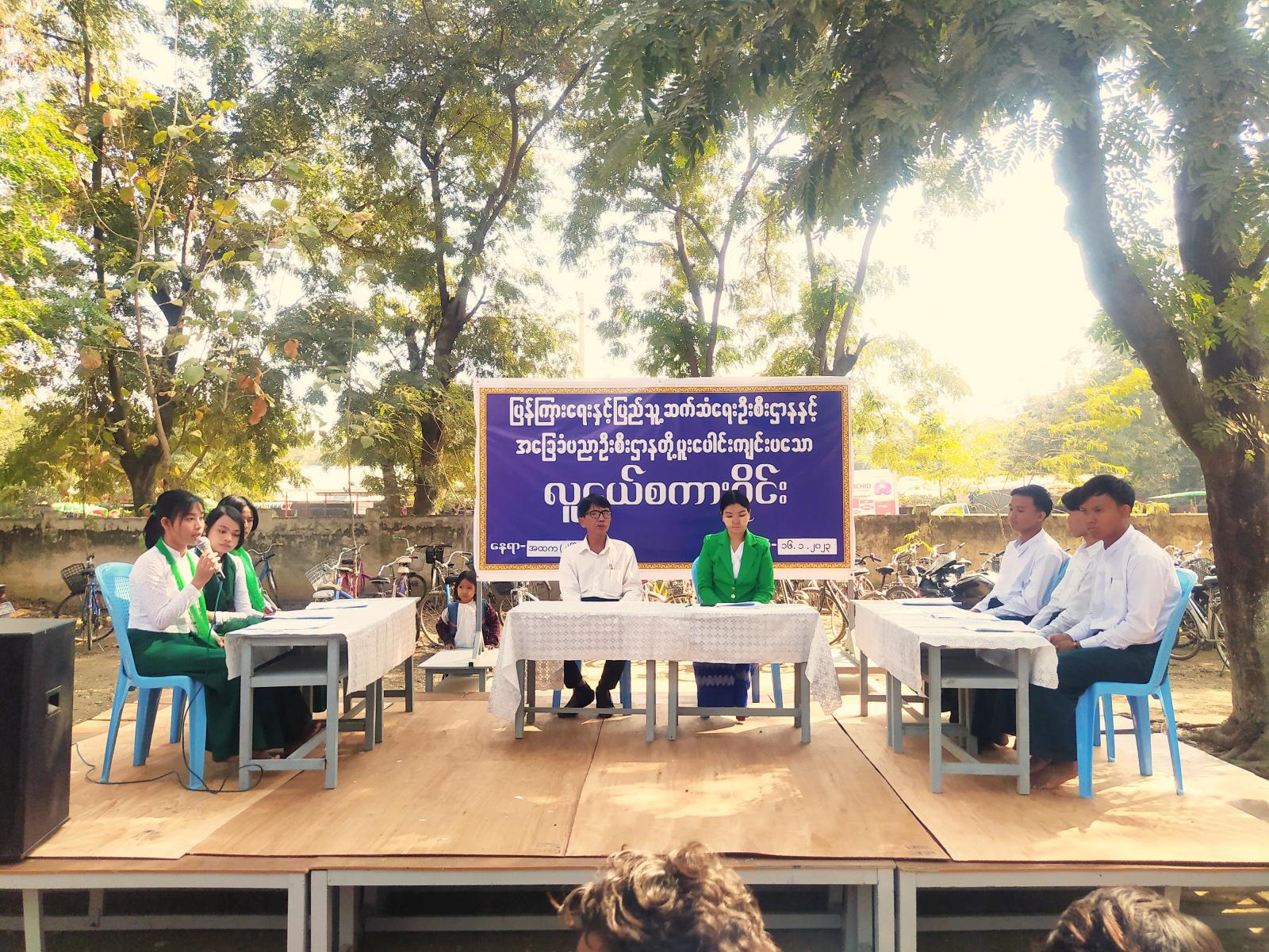 ထို့နောက် လူငယ်စကားဝိုင်းကို မြို့နယ်ပြန်ကြား ရေးနှင့်ပြည်သူ့ဆက်ဆံရေးဦးစီးဌာန ဦးစီးအရာရှိ ဒေါ်ဝင်းအိဇွန်က ဦးဆောင်ဆွေးနွေးကာ ကျောင်းသား၊ ကျောင်းသူ(၆)ဦးတို့က "လူငယ်နှင့်အားကစား၊ လူငယ်နှင့်ကျန်းမာရေး၊ လူငယ်နှင့်ကြီးပွားရေး၊ လူငယ်နှင့်ပညာရေး၊ လူငယ်နှင့်ယဥ်ကျေးမှုတန်ဖိုး၊ လူငယ်နှင့်စာဖတ်ခြင်းအကျိုးကျေးဇူး" အစရှိသည့်ခေါင်းစဉ်များဖြင့်ဆွေးနွေးခဲ့သည်။