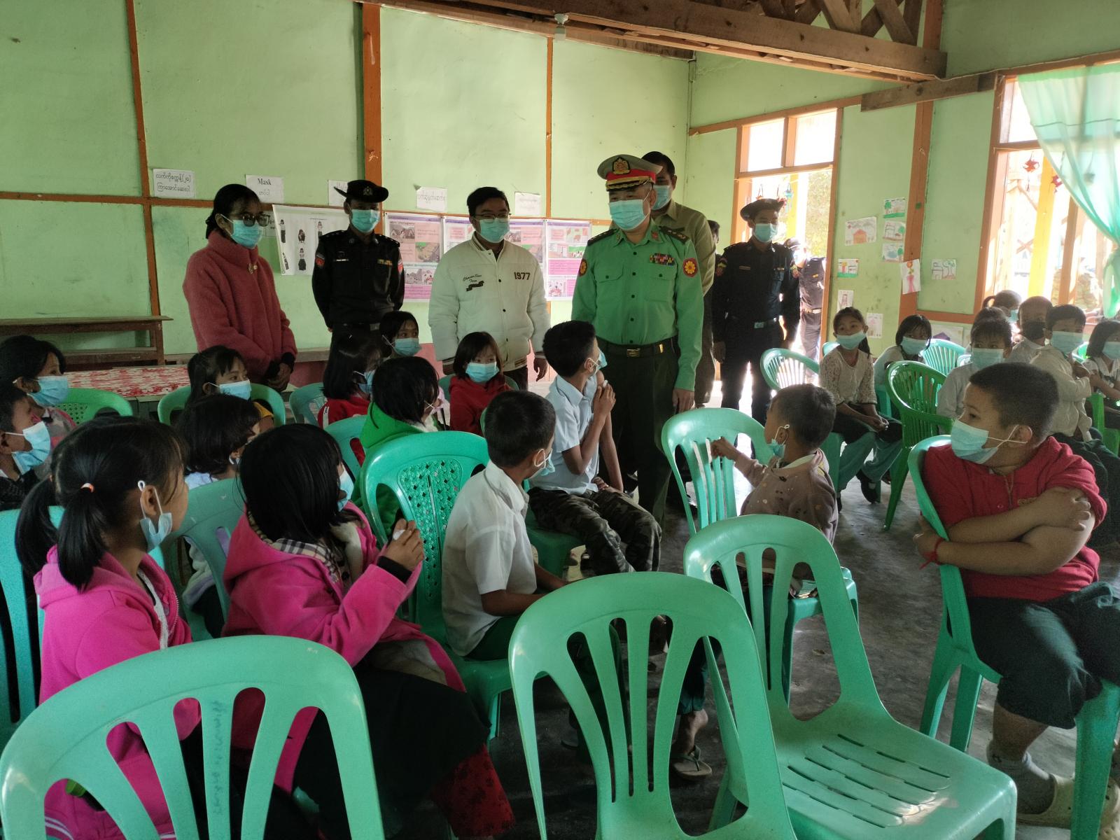 ထိုသို့ ကိုဗစ်-၁၉ရောဂါ တတိယအကြိမ် ထပ်ဆောင်းကာကွယ်ဆေးထိုးပေးနေမှုအား မိုင်းပန်မြို့နယ် အမှတ်(၁၇)၊ စစ်ဆင်ရေးကွပ်ကဲမှုဌာနချုပ်၊ ဒုတိယစစ်ဆင်ရေးကွပ်ကဲရေးမှူး၊ ဗိုလ်မှူးကြီးတင်မင်းလတ်၊ မြို့နယ်ကိုဗစ်-၁၉ရောဂါ ကာကွယ်ထိန်းချုပ်ရေးနှင့် အရေးပေါ်တုံ့ပြန်ရေး ကော်မတီအဖွဲ့ဥက္ကဋ္ဌ၊ ဦးဟန်ဇော်မြင့်နှင့်အဖွဲ့ဝင်များ၊ မြို့နယ်ကုသရေးဦးစီးမှူး ဒေါက်တာနိုင်လင်းထွန်းနှင့် သက်ဆိုင်ရာဌာနများက ကျောင်းသား/သူများကို သွားရောက်ကြည့်ရှုအားပေးခဲ့ကြောင်း သိရသည်။