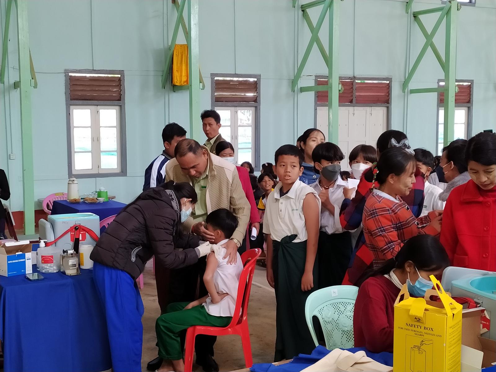ရှမ်းပြည်နယ်(တောင်ပိုင်း)၊ ဓနုကိုယ်ပိုင်အုပ်ချုပ်ခွင့်ရဒေသ၊ ပင်းတယမြို့နယ်ရှိ အခြေခံပညာကျောင်းများမှ အသက် ၅ နှစ်မှ ၁၂ အထိ ကျောင်းသား၊ ကျောင်းသူများကို COVID -19 ရောဂါကာကွယ်ဆေး (တတိယအကြိမ်)ထိုးနှံပေးခြင်းကို ယနေ့နံနက်ပိုင်းက စတင်ထိုးနှံပေးလျက်ရှိသည်။